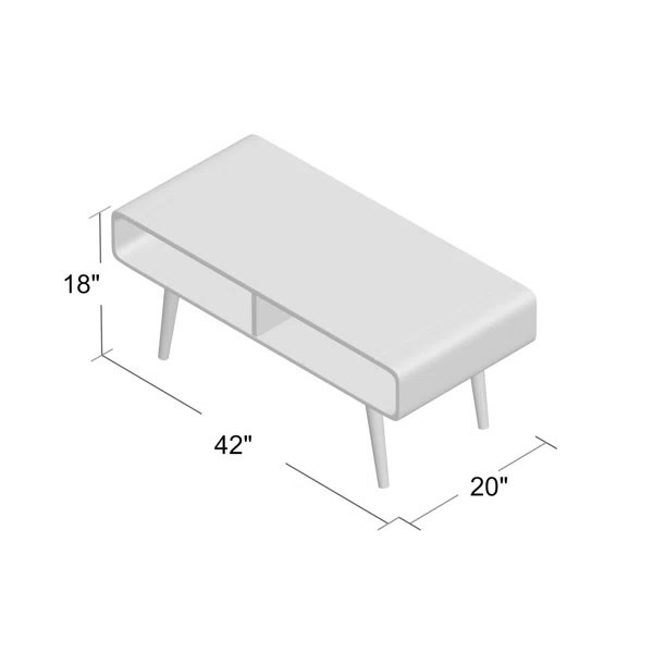This Baystone Solid Wood Coffee Table brings clean lines to center stage. It has a solid wood top & leg, all in a matching brown finish. This table features a rectangular silhouette with slightly rounded edges, and stands on splayed legs for a mid-century modern feel. Slide coffee table books and flat-screen remotes into its two exposed, cubby-style shelves, and the rest of the beverages and display items on its surface. Sleek and streamlined, this coffee table complements nearly any modern or contemporary decor. Simply place it in front of your loveseat or sofa, and seamlessly tie your living space together.