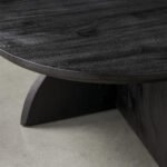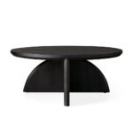 Calderone Round Coffee Table crafted from solid wood, sustainably harvested mango wood. Features a matte black or matte Black finish. Sealed with a matte lacquer finish for extra protection.