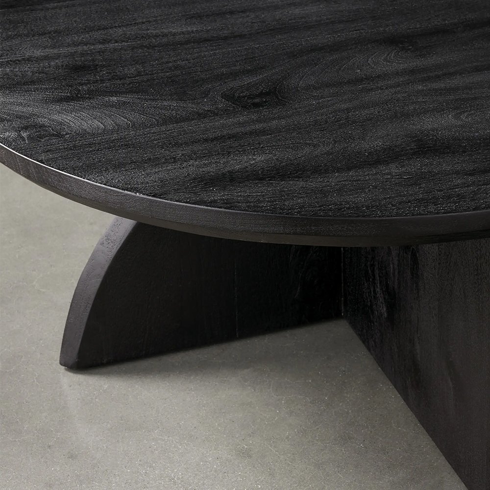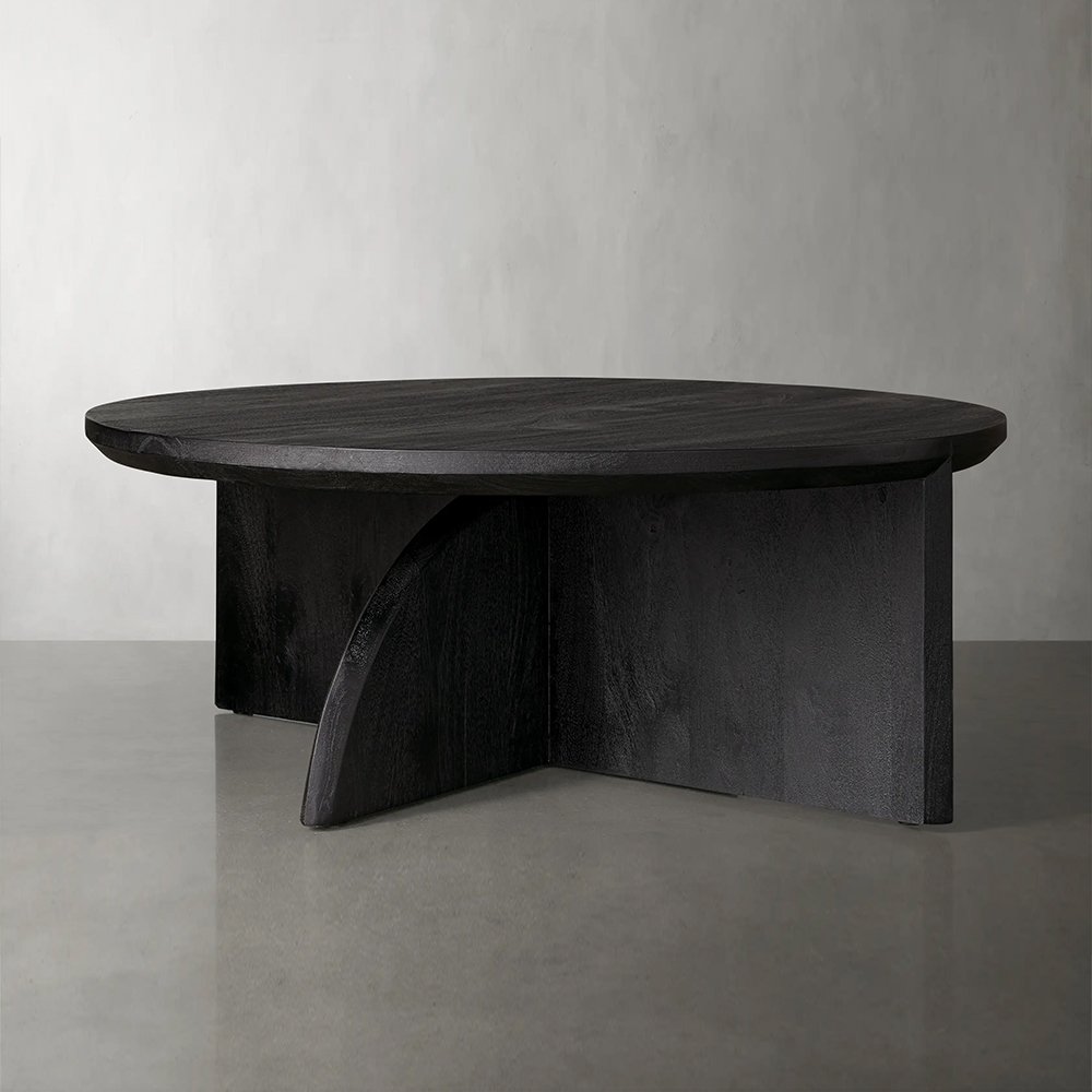 Calderone Round Coffee Table crafted from solid wood, sustainably harvested mango wood. Features a matte black or matte Black finish. Sealed with a matte lacquer finish for extra protection.