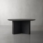 Germain Round Coffee Table wood tabletops are constructed from solid wood, complemented by a Black or Brown finish. Table bases finished in Black or Brown are crafted from solid mango wood.