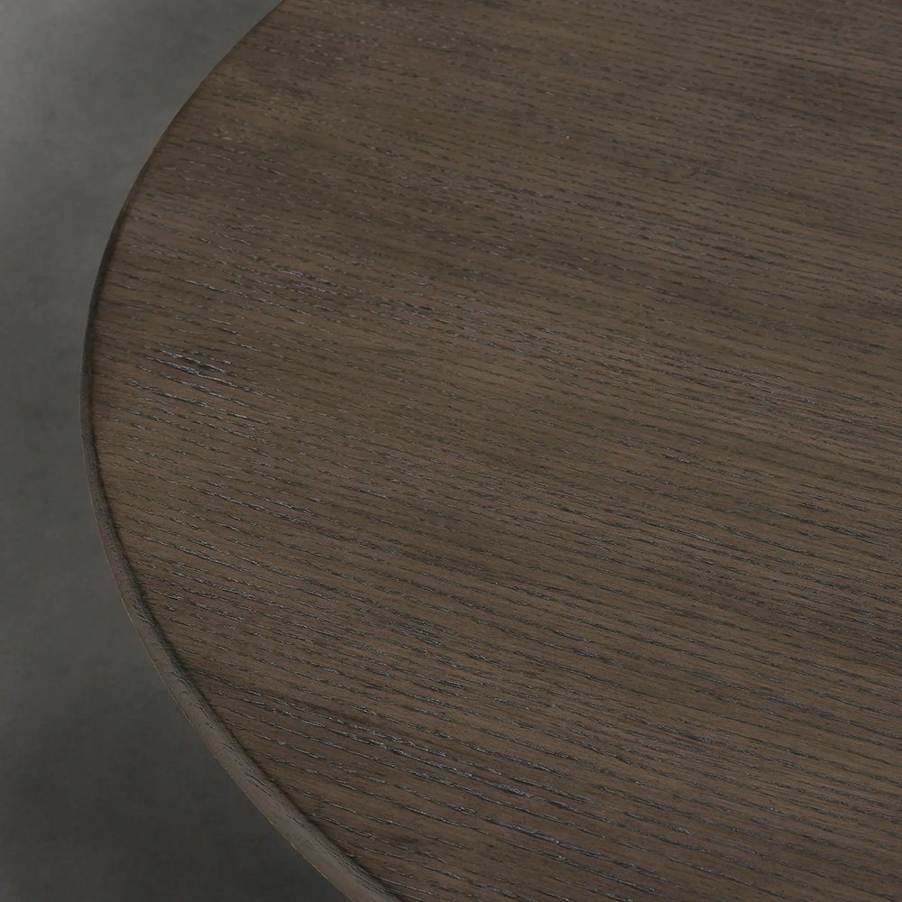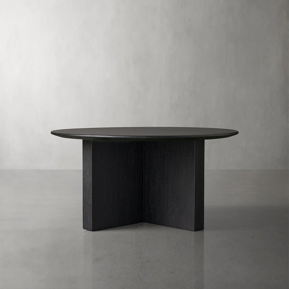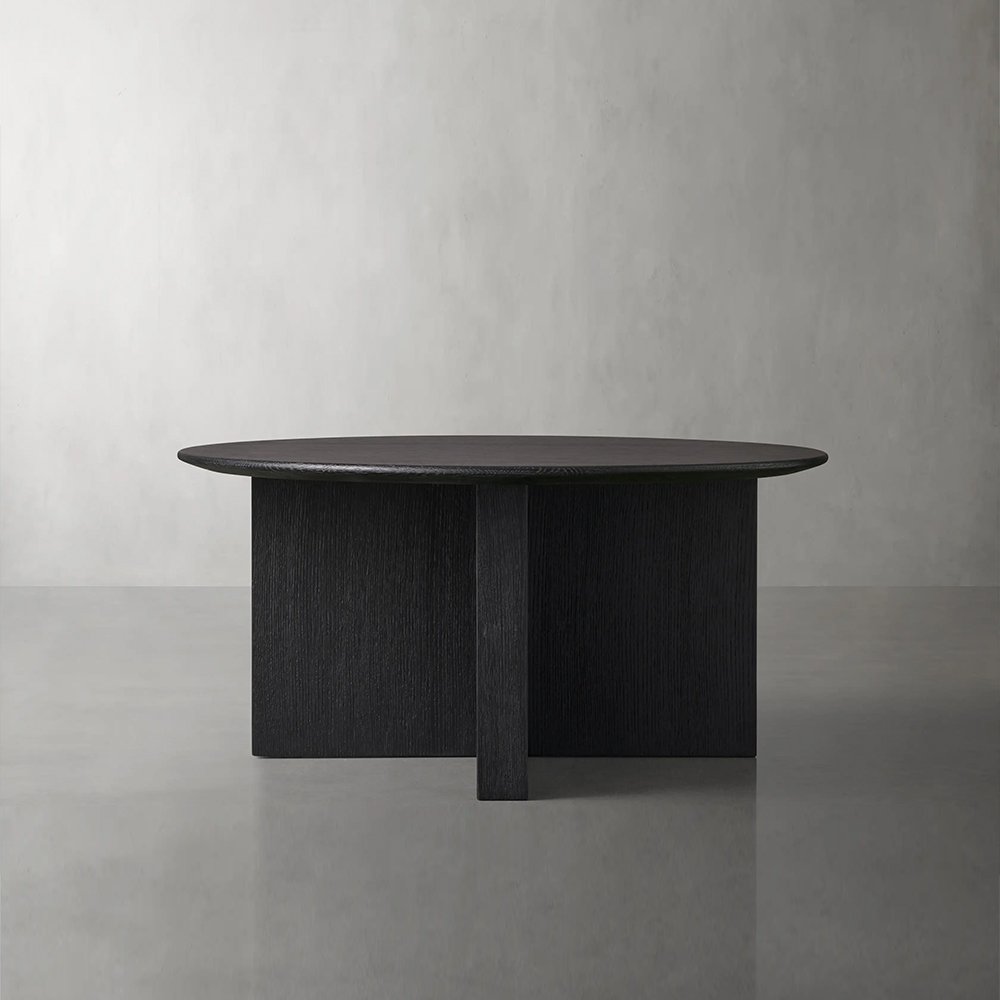 Germain Round Coffee Table wood tabletops are constructed from solid wood, complemented by a Black or Brown finish. Table bases finished in Black or Brown are crafted from solid mango wood.
