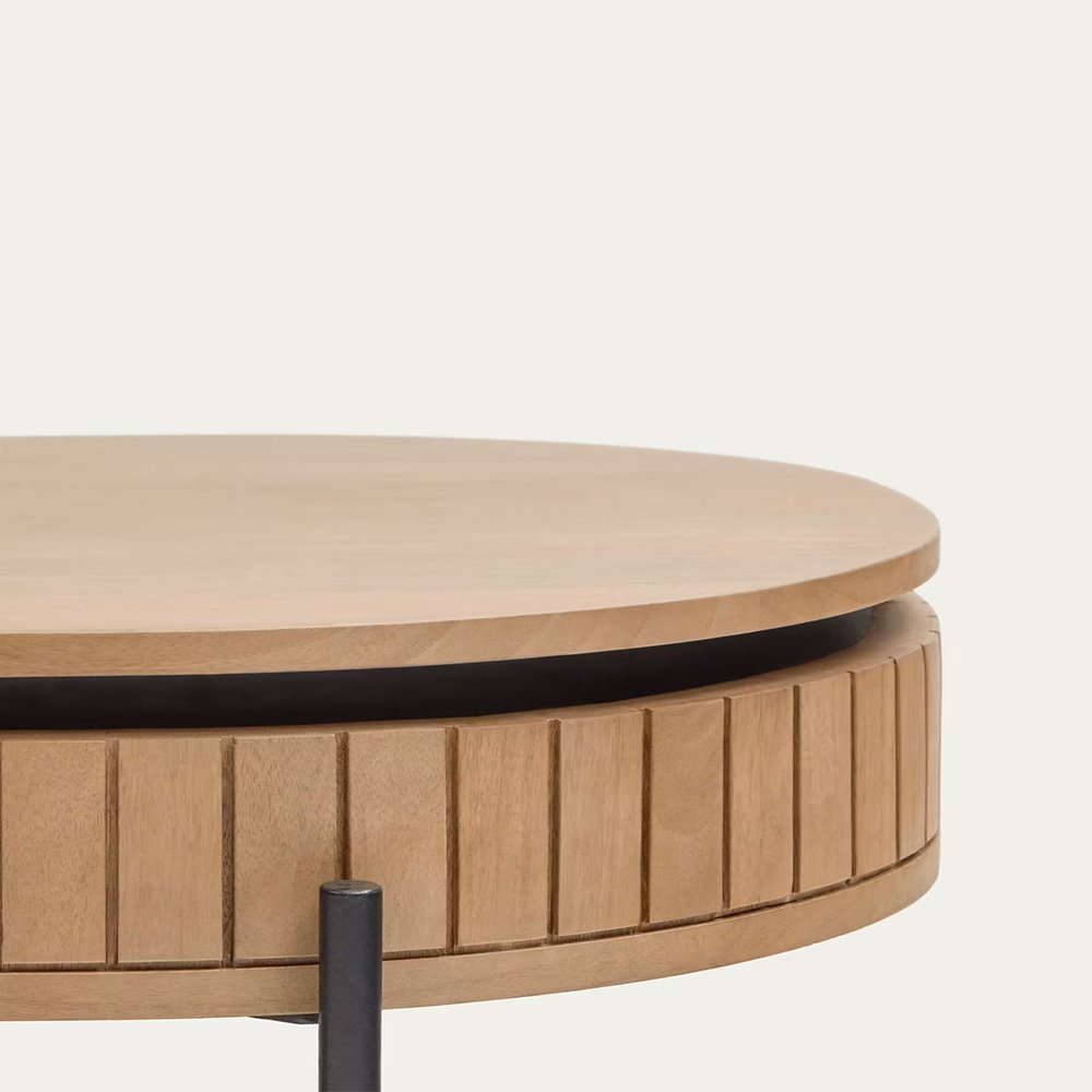 Licia Coffee Table is made from solid wood with a natural finish. It has adjustable legs to overcome any unevenness of the floor. Combined with the side table, it forms a nest of tables with two heights. Available in other finishes and sizes.