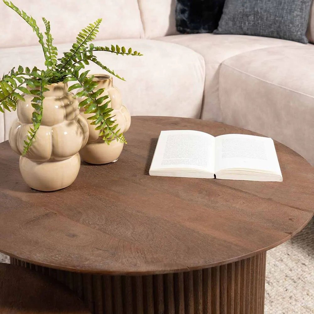 This cool Lindenvale Coffee Table is brown and made entirely of Solid mango wood. This beautiful, round coffee table is available in a small and large version. Nice to combine!
