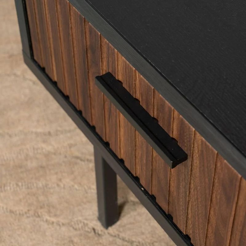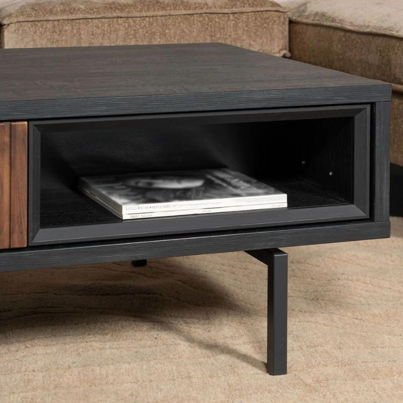With the cool living series Quailstone, you go for top quality and the living trend of today! The furniture from this trendy series has a black exterior and interior and stands on a metal base. The drawers and doors are brown and have a cool ribbed effect and subtle, narrow handles. Combine the cabinets and tables and create an attractive collection in your living room!