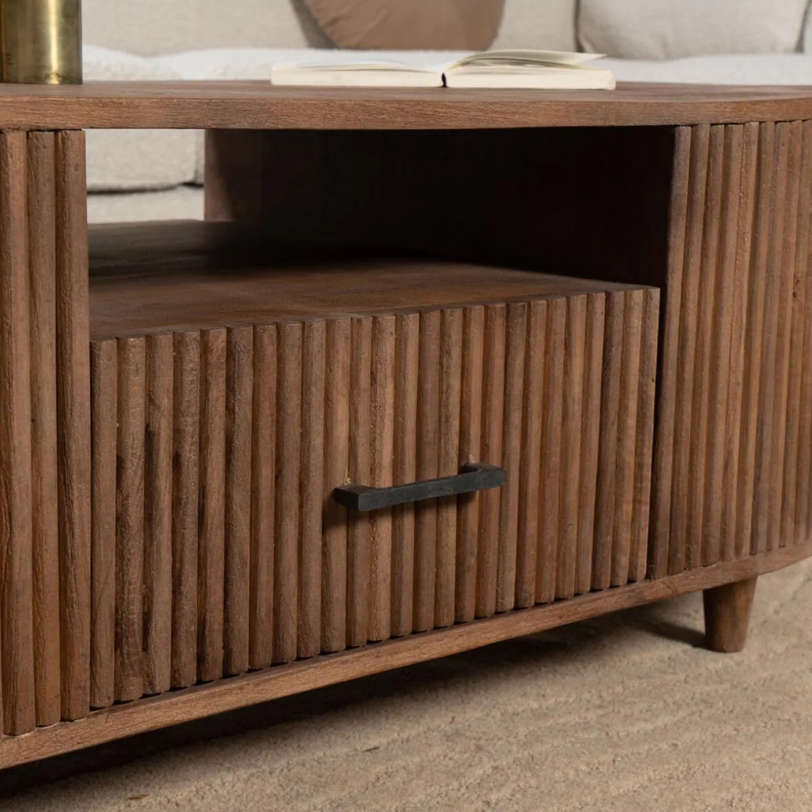 This item is part of the Umberhill home series. A beautiful living series made of solid wood. Umberhill Oval Coffee Table gives this furniture an industrial and vintage look.