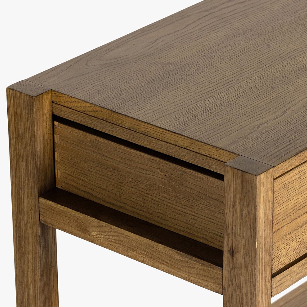 Expertly crafted of solid mango wood finish. Features 3 spacious drawers and 1 fixed open shelf. Kiln-dried wood helps prevent warping, splitting, cracking, and developing mildew.