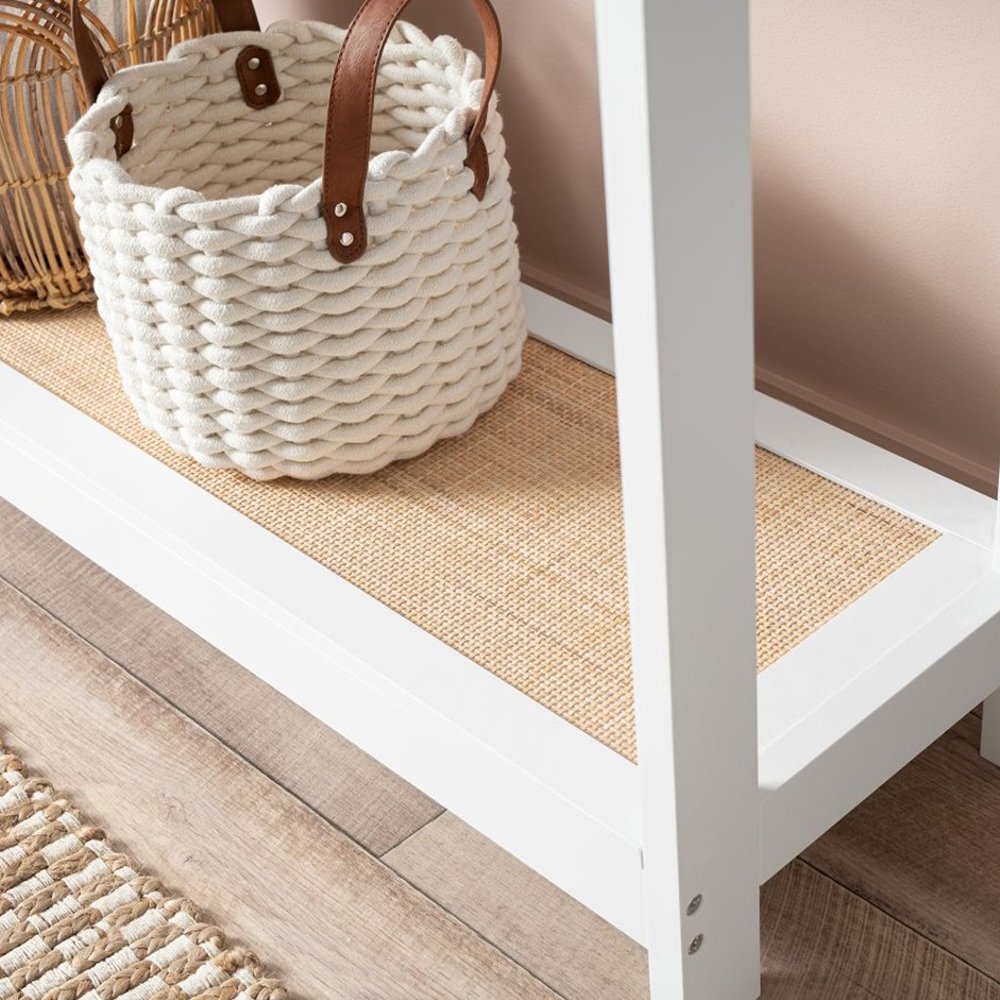 The Willowfield Console Table creates a coastal-inspired entryway for your home. This hall table features two, spacious shelves for multiple storage and display options and is perfect for an entryway, hallway, or open living space. Style the top surface with a lamp, books, and other décor, and utilize the bottom shelf for practical and stylish basket storage. We love the pairing of a painted, white frame with real rattan-weaved panels for a light and bright look that adds natural texture to a space.
