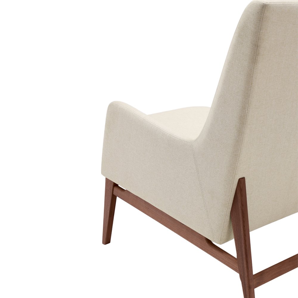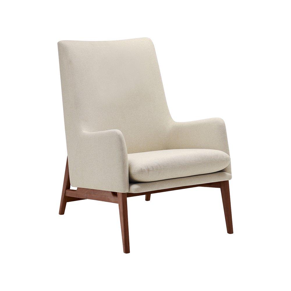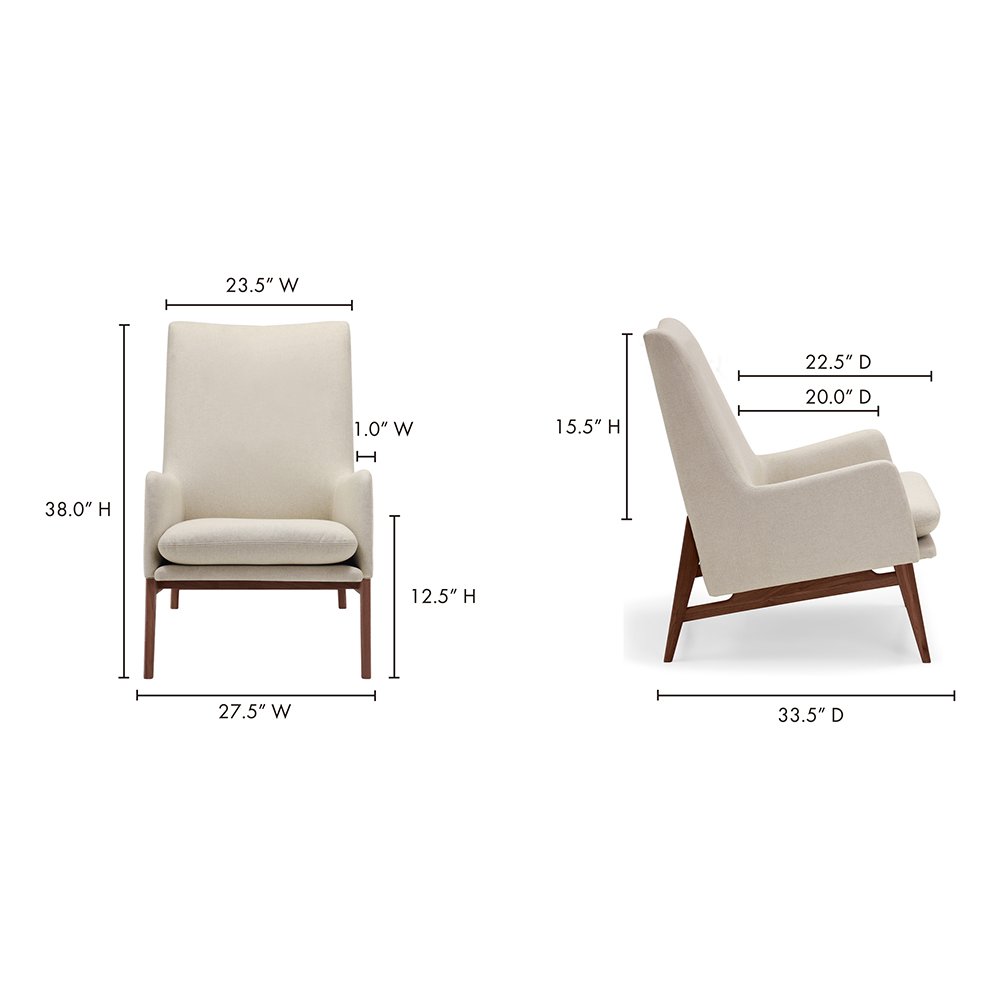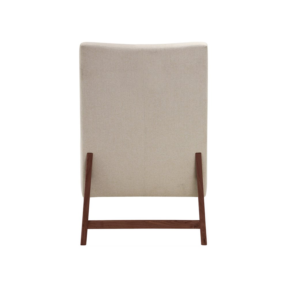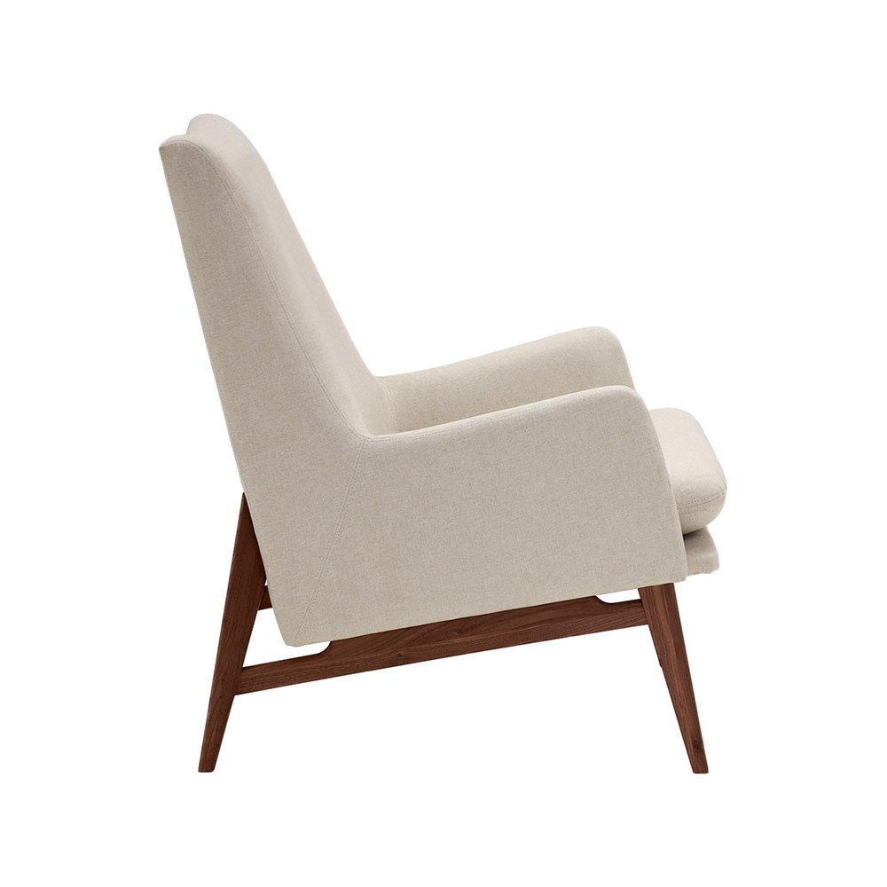 The Anderson armchair features comfortable tufted seating and elegant slender side arms. Premium, 100% cotton upholstery in a refined beige hue creates a delightful contrast against its robust, solid mango wood construction – a harmonious blend of textures and materials.
