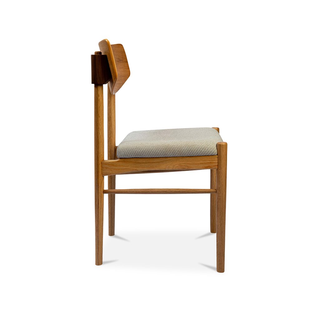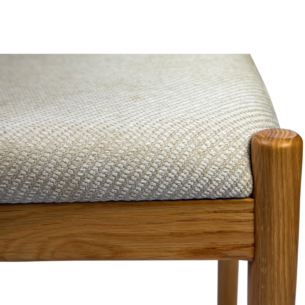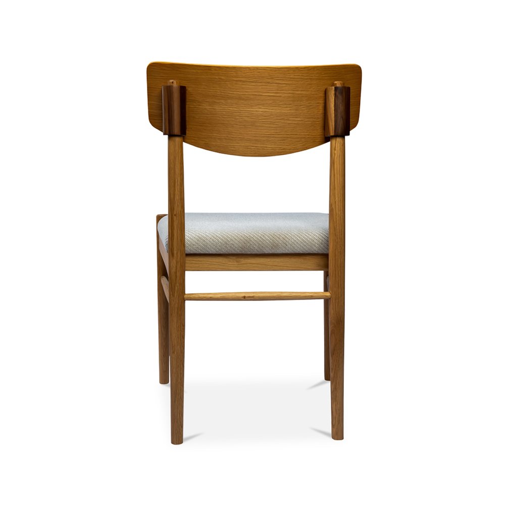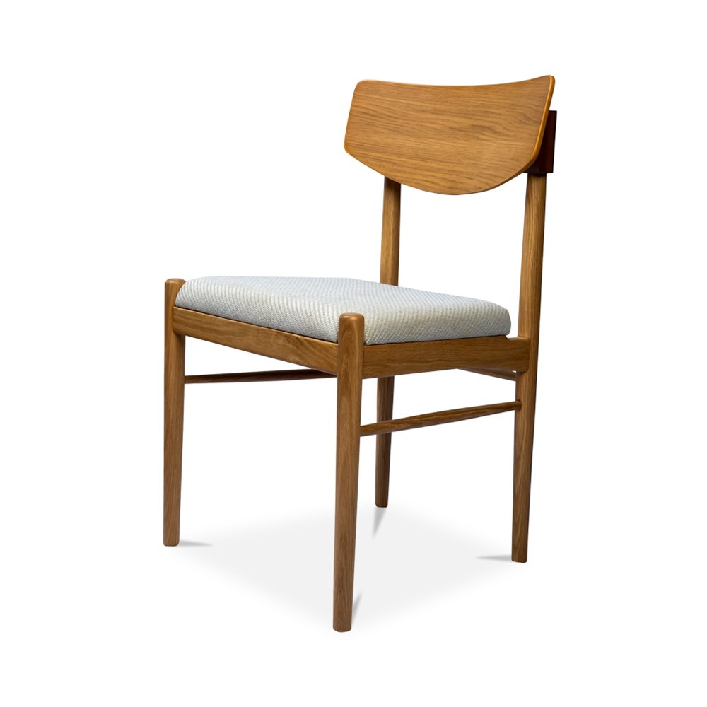 Simplistic in form, this dining chair is as comfortable as it is stylish. A curved backrest allows for comfortable seating, while the seat itself is made with a high-resiliency foam wrapped in textured polyester that adds tactility to the piece. Slot into perfection with the exquisite joinery detailing and bask in the natural beauty of the oak wood frame.