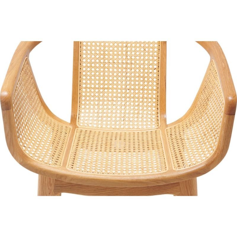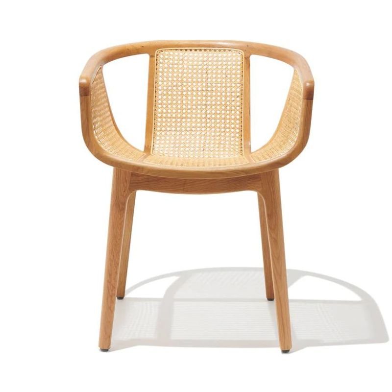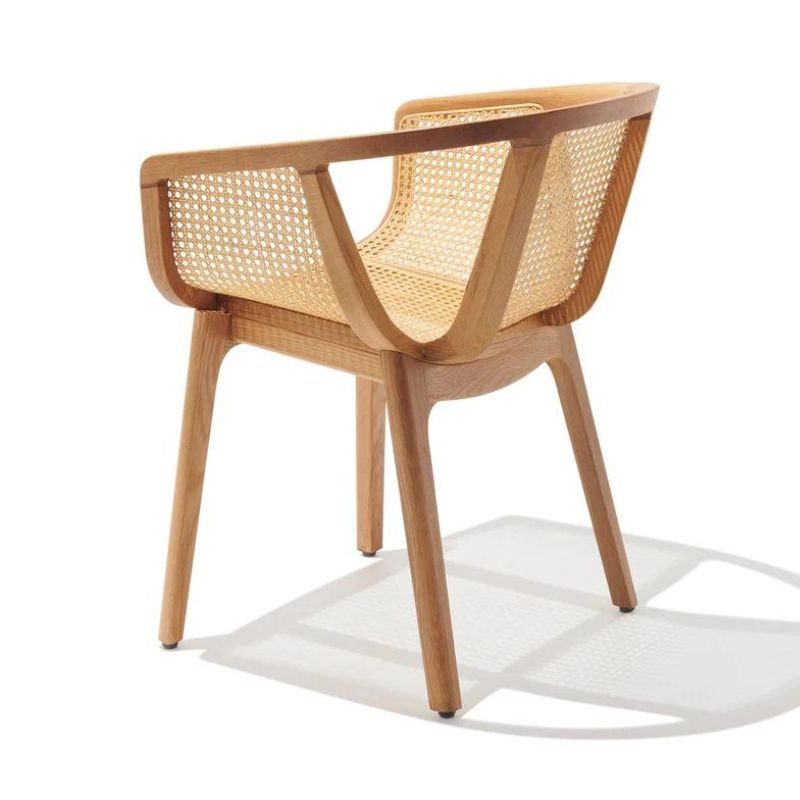 Enjoy your next meal encompassed in solid wood and woven cane an elegant duo known to elevate their environment.