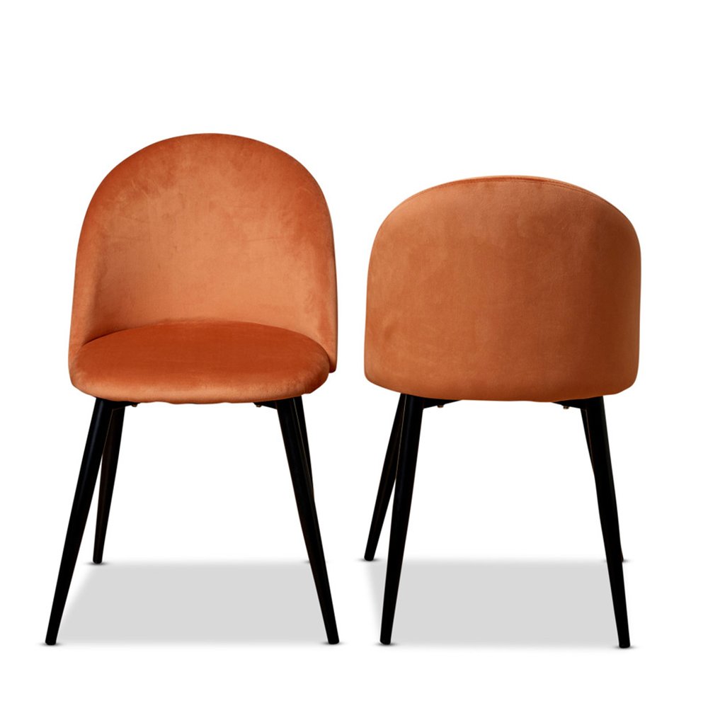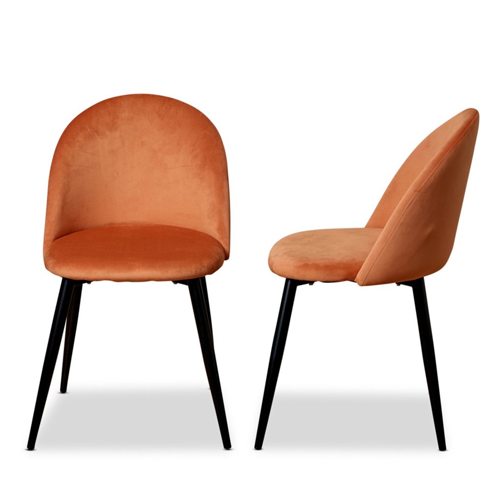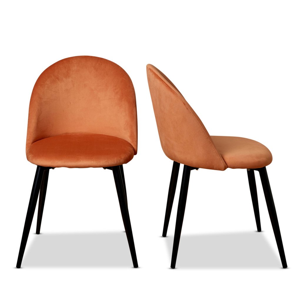 Add pure luxury to your dining room with the Prescott Dining Chairs Set of 2 – Rust. The curved back is on-trend and oh-so-chic, giving these chairs an eye-catching style you’ll love at your dining table. Upholstered with a rich velvet fabric that’s so soft to the touch, they shine in a stunning, warm rust color.
