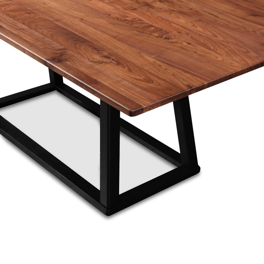 The Everglen dining table accentuates the gorgeous walnut top. A stylish and modern piece for the dining room.