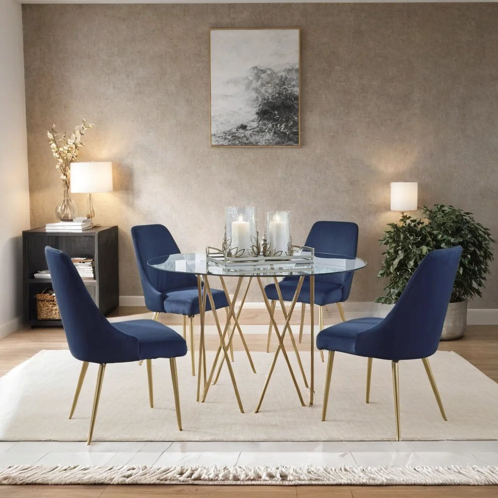 The golden dining table with a glass top is not only a functional piece for enjoying meals but also a statement piece that elevates the ambiance of your dining area. It is perfect for formal dining occasions and also adds a touch of elegance to everyday meals.