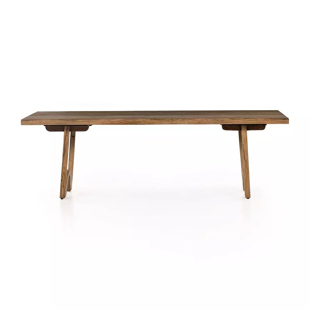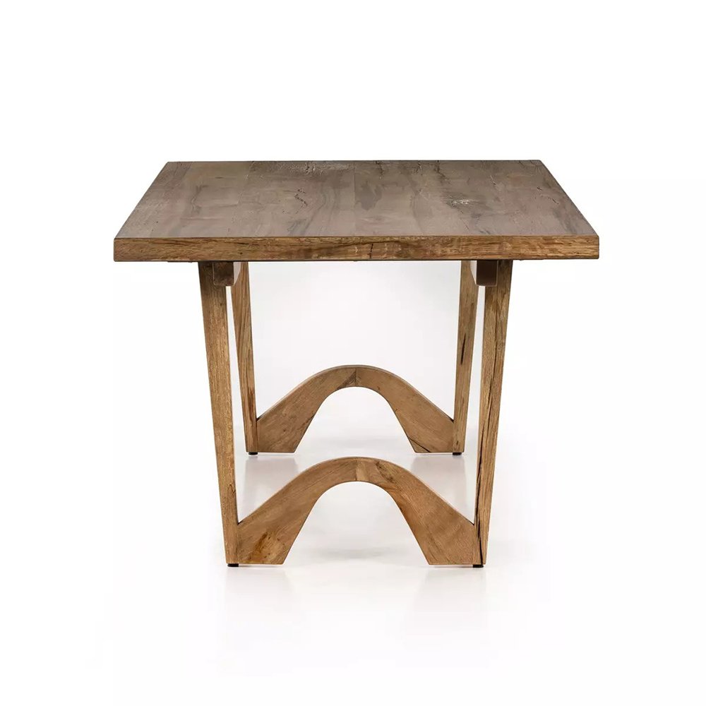 Ahead of the curve. Evocative of traditional European design, spalted alder legs form unique arches to support a spacious rectangular tabletop made from rustic-finished Solid Mango Wood. Seats eight comfortably. Solid mango wood dining tables offer a beautiful combination of strength, natural aesthetics, and timeless appeal.