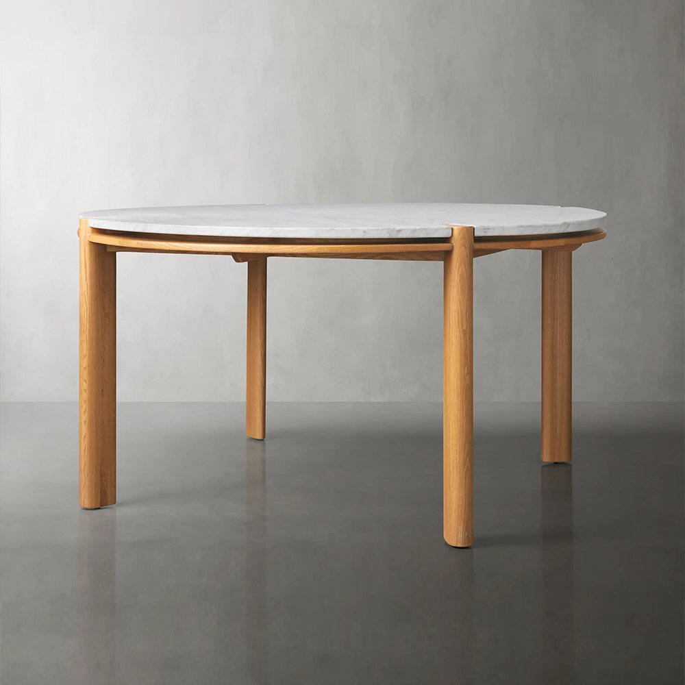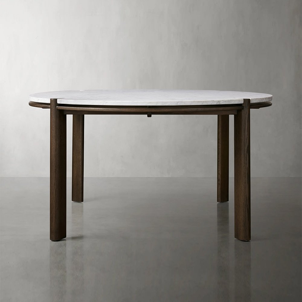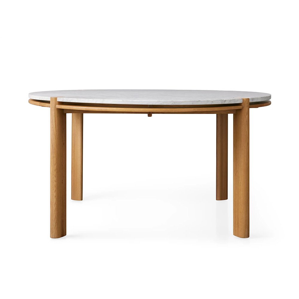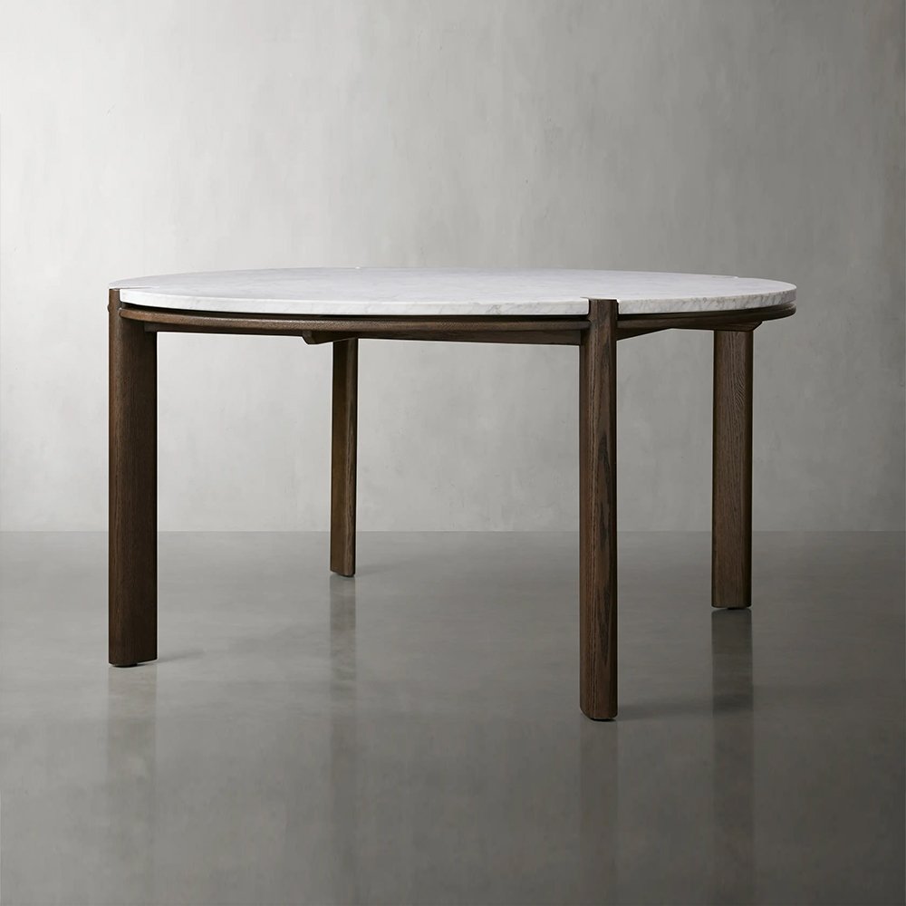 Bases are crafted from solid wood hand-stained with a striking finish and protective lacquer for a subtle sheen. Tops are crafted from natural marble stone solid wood joinery to bases for added strength and stability. Carrara marble is sourced from Rajasthan.