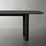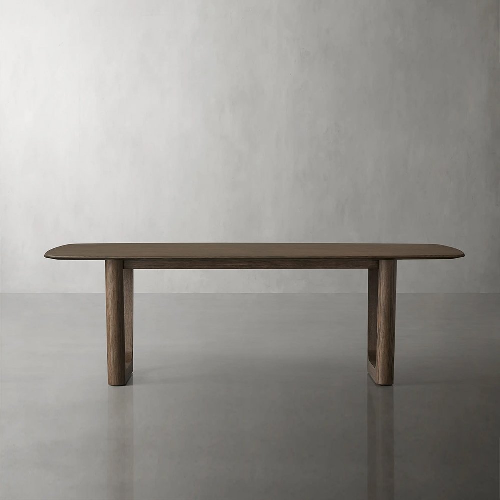 • Dining room table with solid wood in a natural finish.