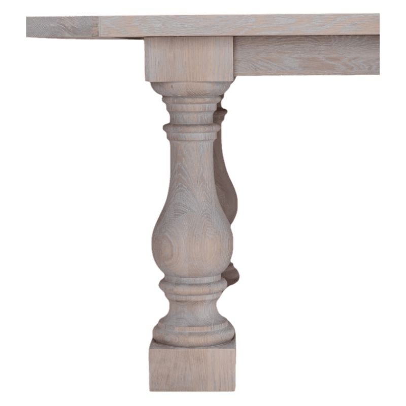 Velmont is a celebration of the sheer strength and beauty of solid wood. This dining table features a farmhouse-style tabletop that sits over striking baluster legs. The design is inspired by the shapes of classical architecture, and it brings a sculptural silhouette to any setting. This size seats between eight and 10.