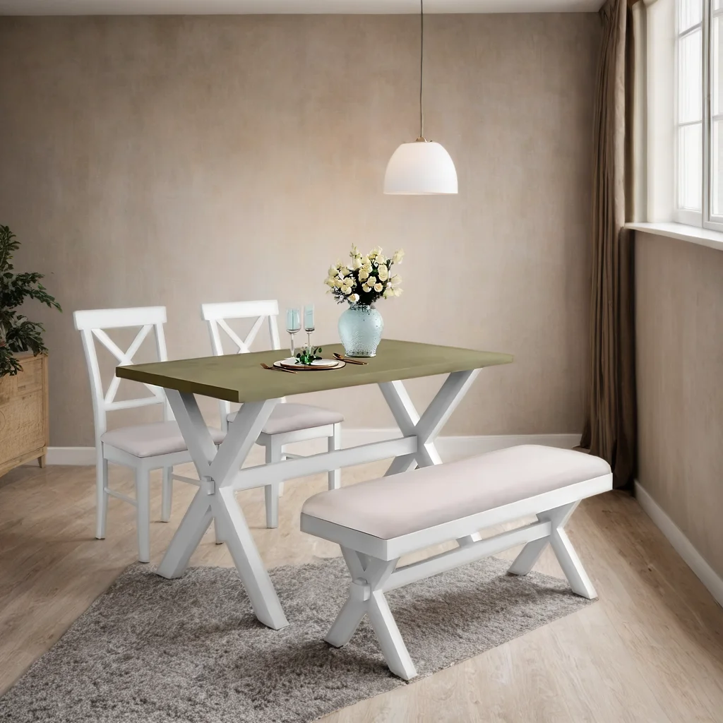 Our exquisite dining table with bench, a true masterpiece that combines timeless elegance with exceptional craftsmanship. Crafted from premium quality solid wood, this dining set exudes durability, sophistication, and style, making it a perfect addition to any dining room. The centerpiece of this set is the stunning dining table, designed to impress both aesthetically and functionally.
