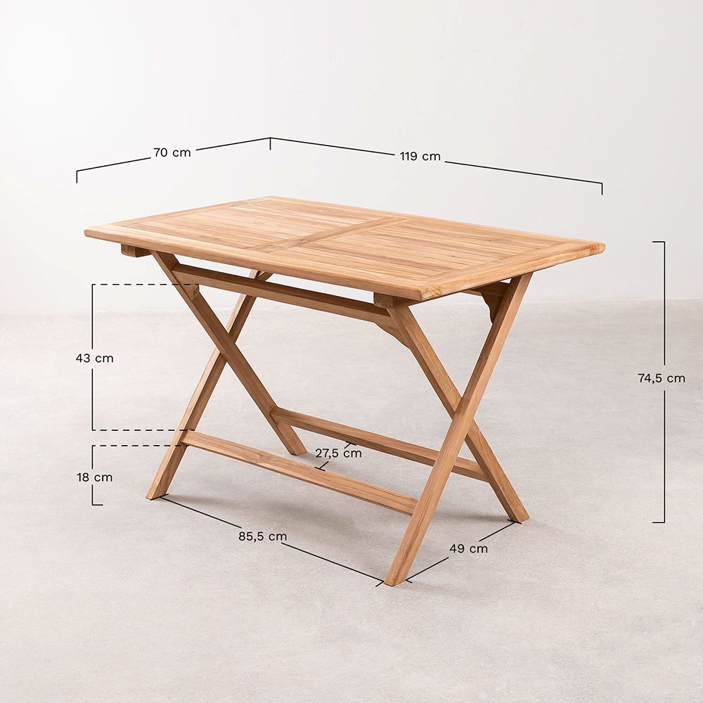 A set made up of 1 rectangular dining table 120 x 70 cm, which you can fold by removing the screws that act as stops, and 2 folding chairs. The Foresthill solid mango Wood Dining Table and 2 Folding Chairs Set is elegant and sophisticated, perfect for kitchens and dining rooms. It is made of mango wood, a noble material that makes it resistant and robust. For more information, you can consult the unit product.