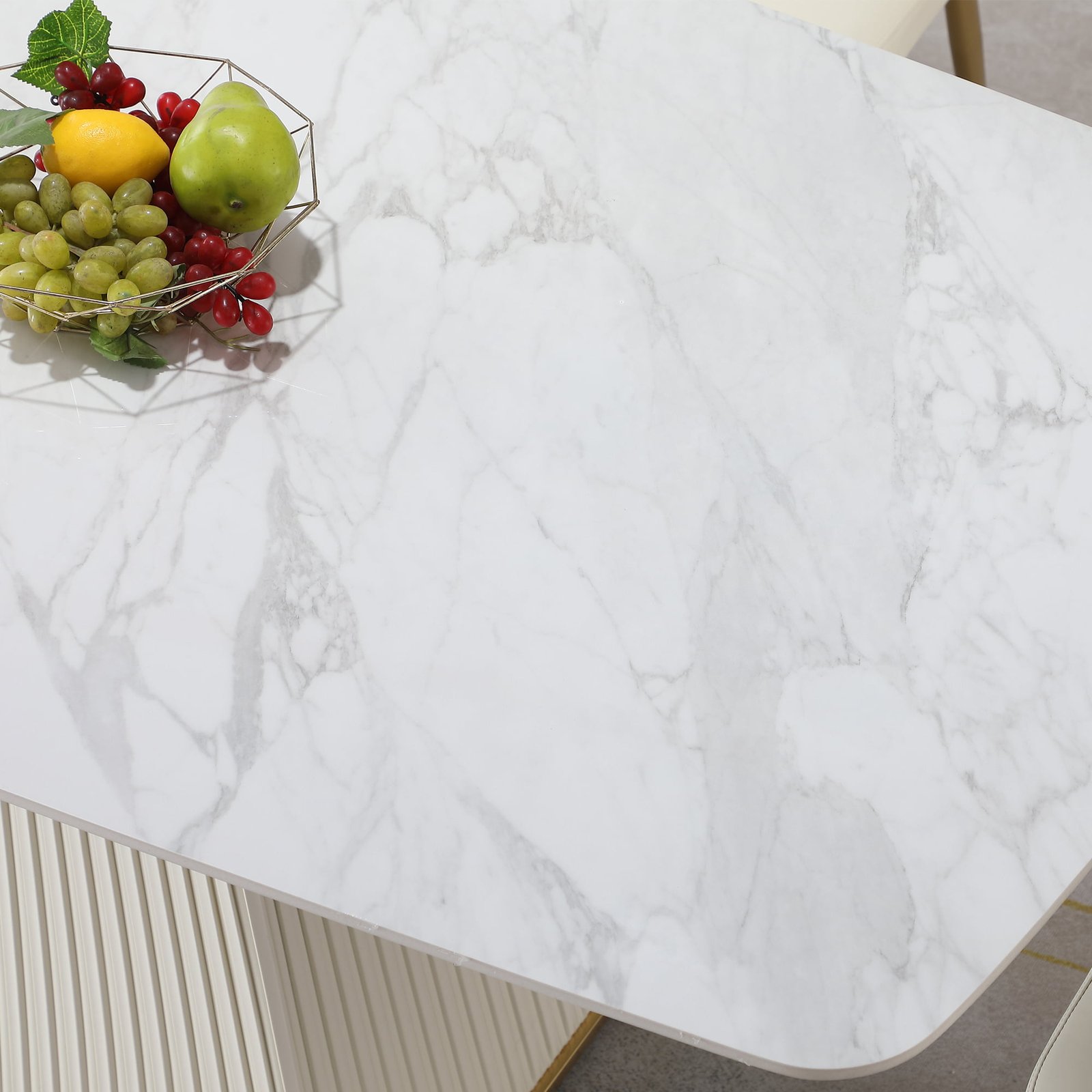 White Marble Dining Table with 6 Chairs for Kitchen, Dining Room