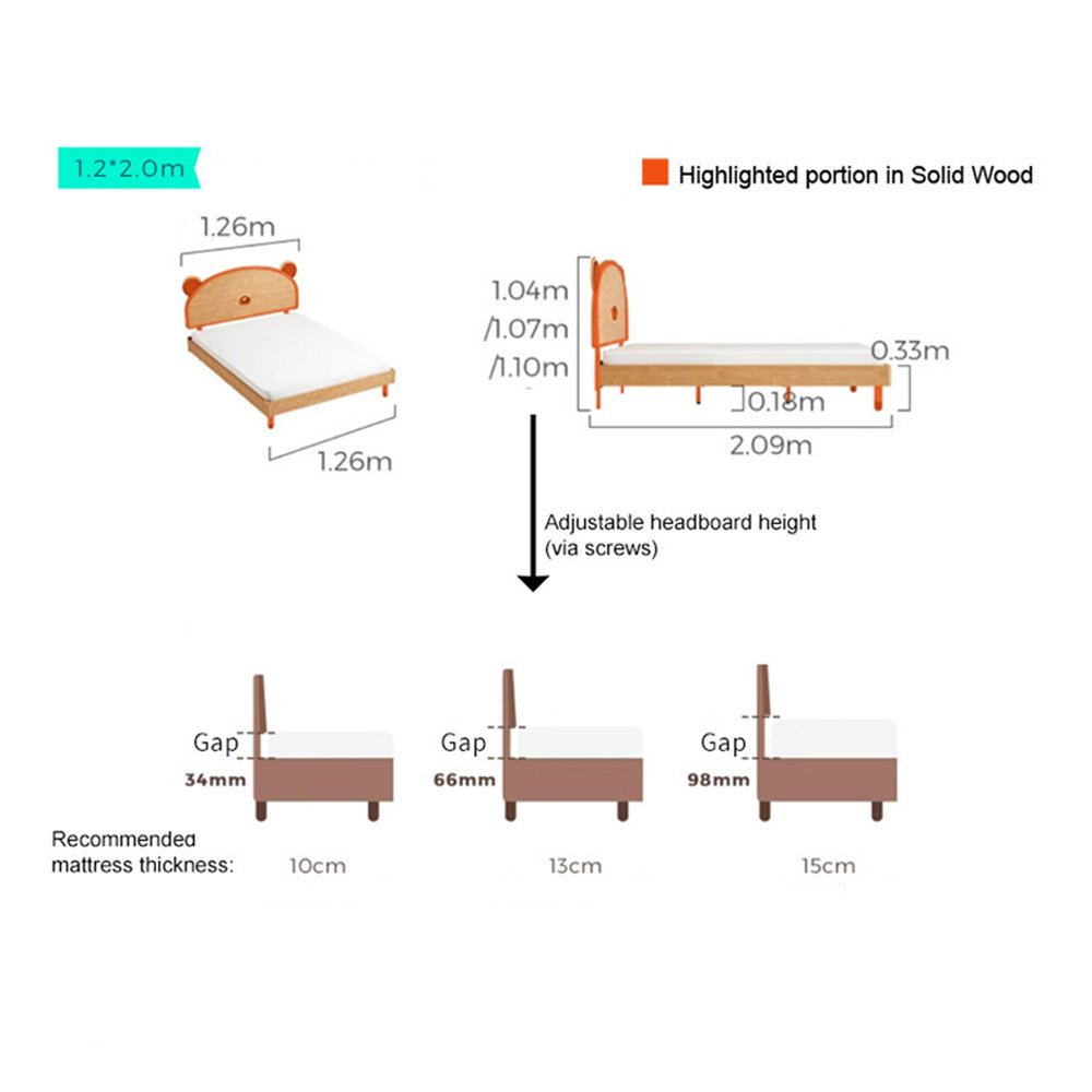 It was made from a solid wood structure. Solid wood slatted base. Elevated design for ease in under-bed maintenance. Headboard can be adjusted (via screw/unscrew) to suit different mattress thicknesses.