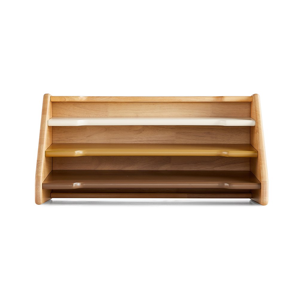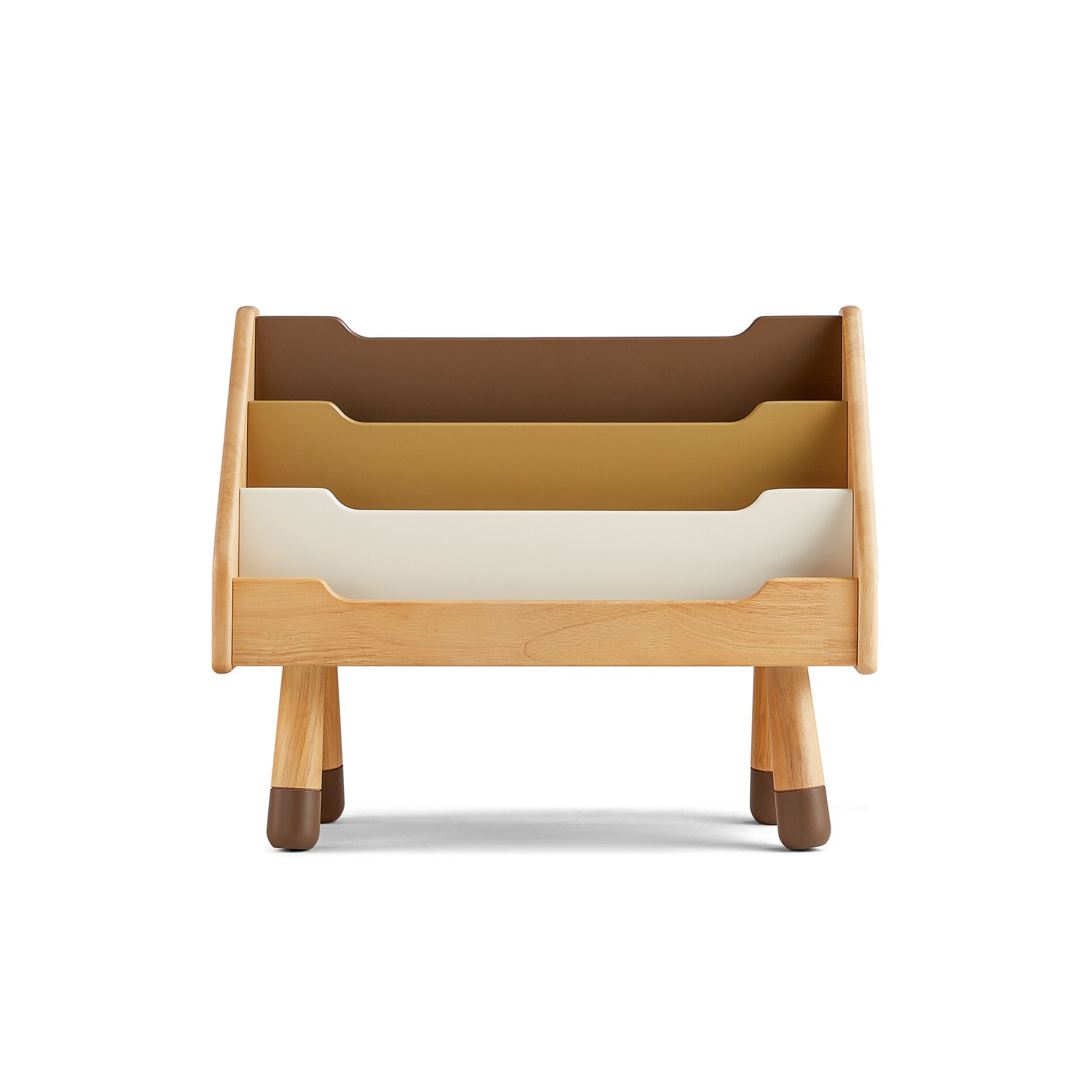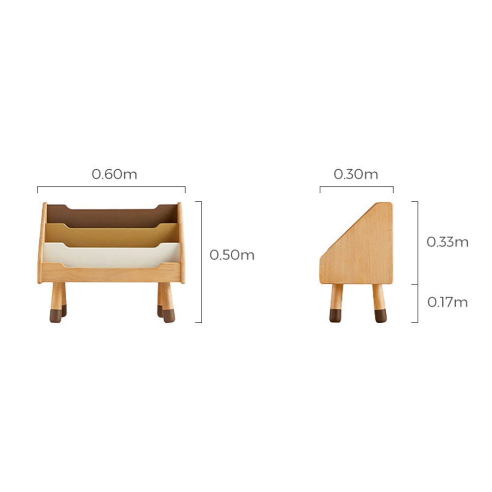 Made of solid wood fingerjoint board. All rounded edges. Tier bookshelf allows kids to have a good view of the books.