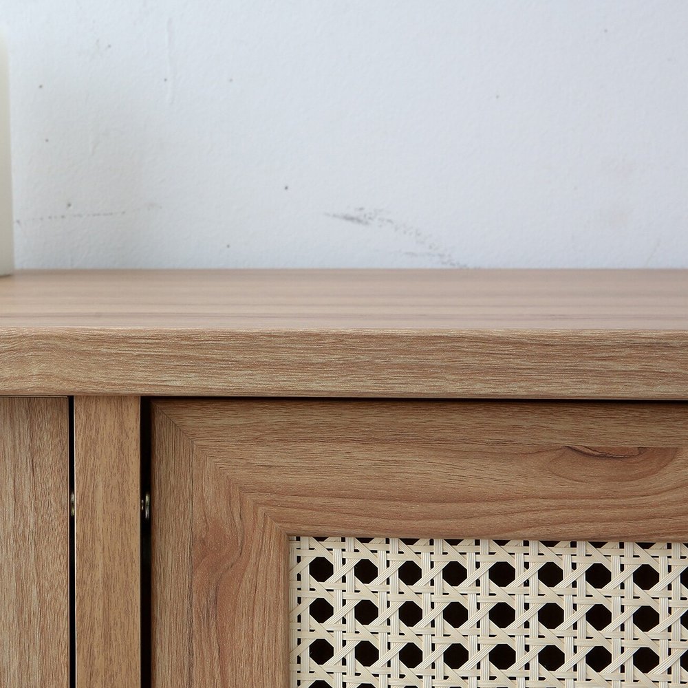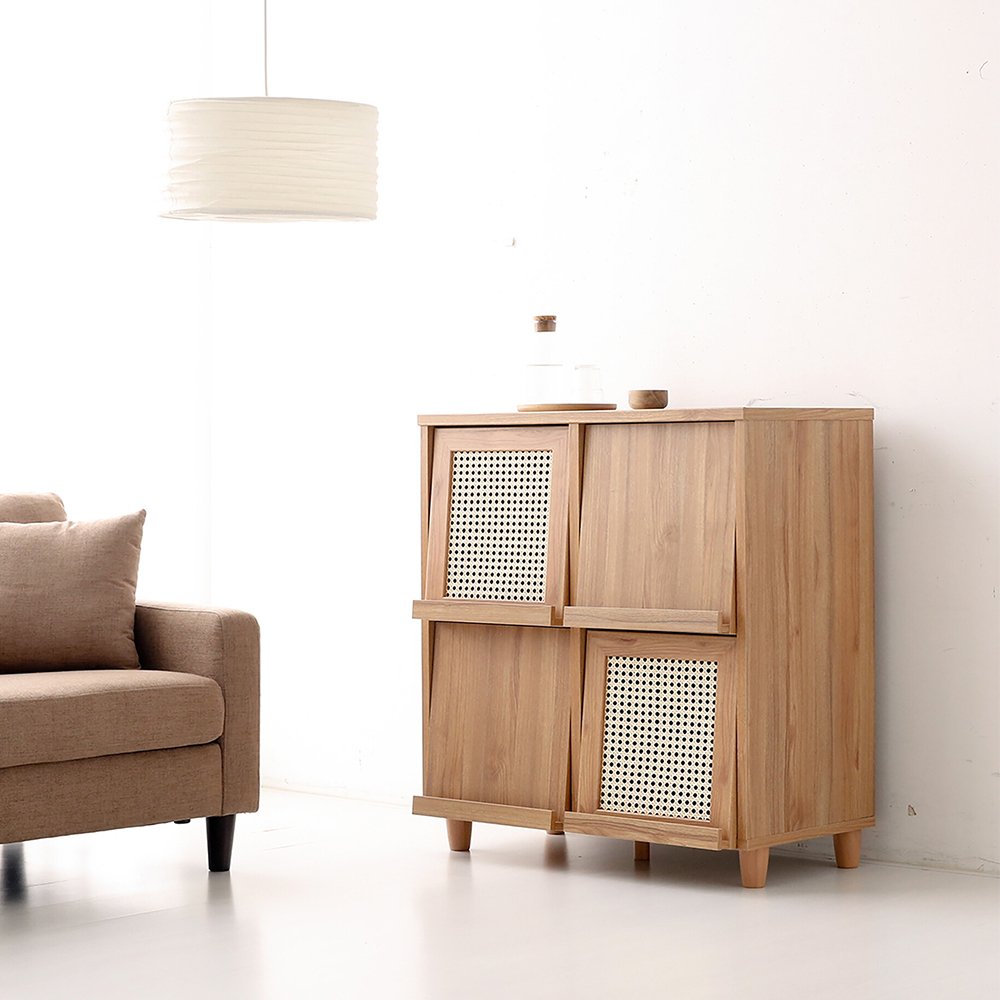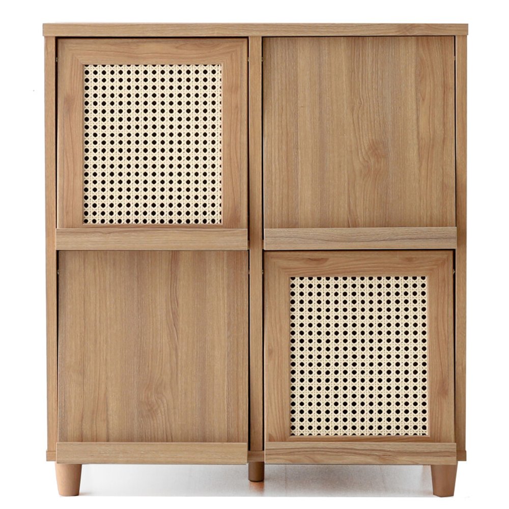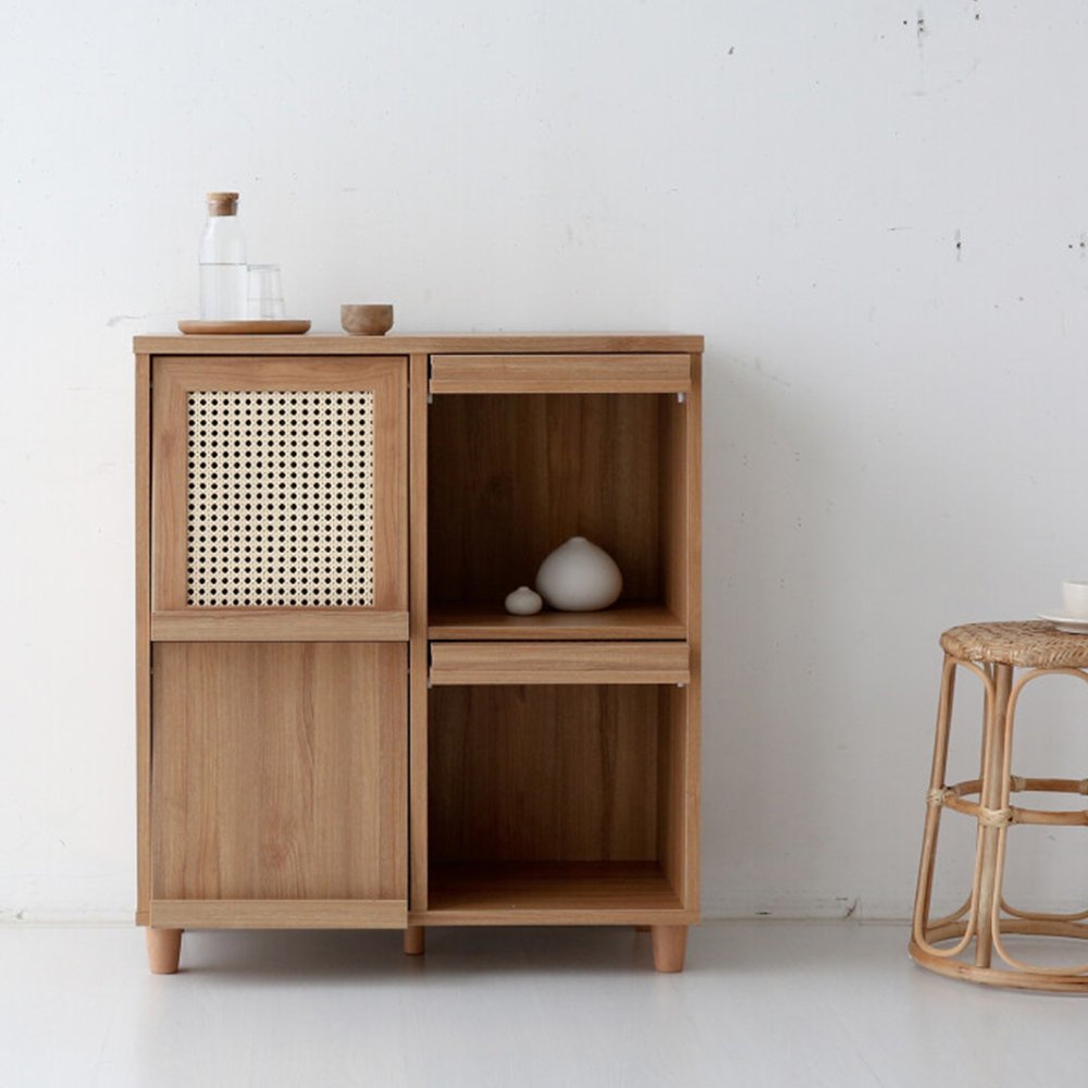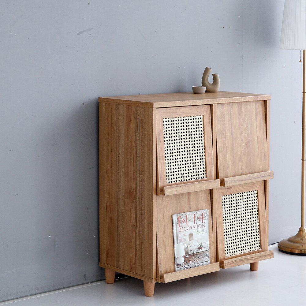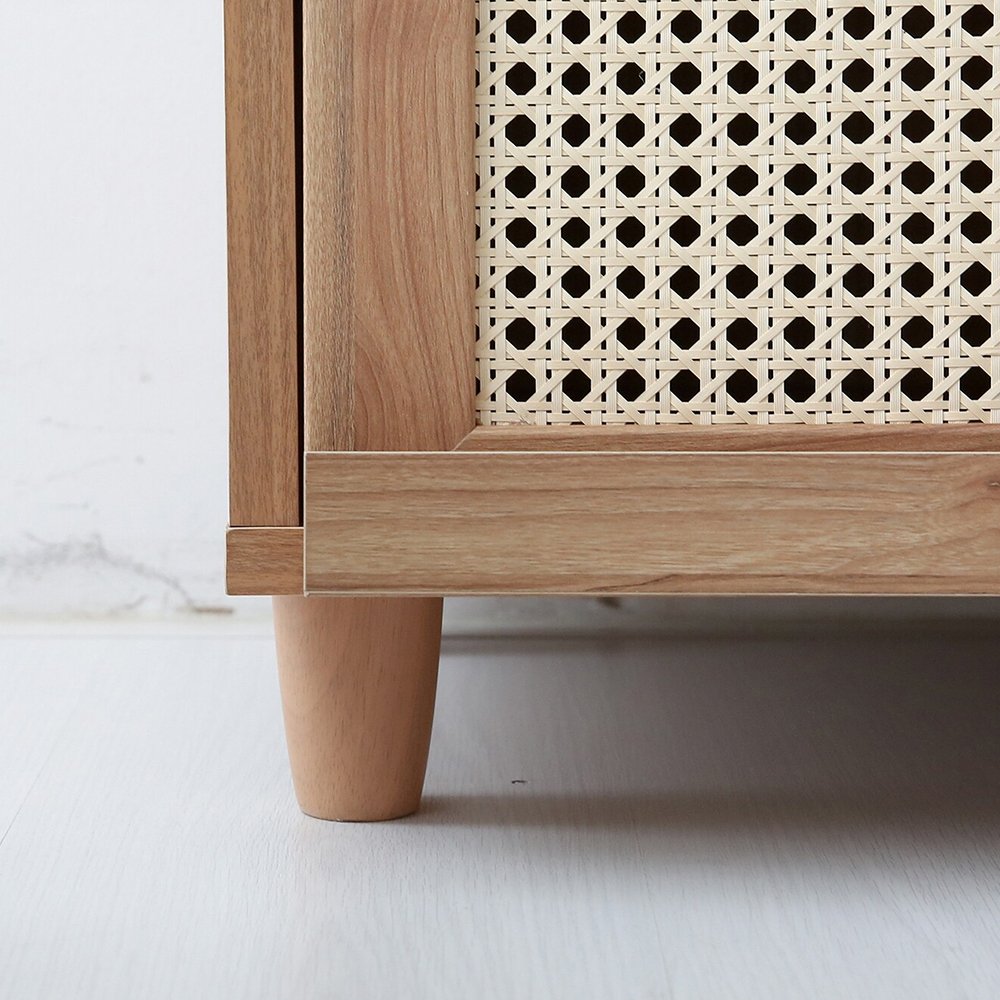 Brighten up your space with the warm and airy Cuddly Cove Large Side Cabinet. Made of eco-friendly solid wood with lightweight synthetic rattan details on alternate flap doors, the cabinet adds warmth and coziness while offering not only storage options but also functions as a platform to showcase your favorite artworks or books on its flap door handles.