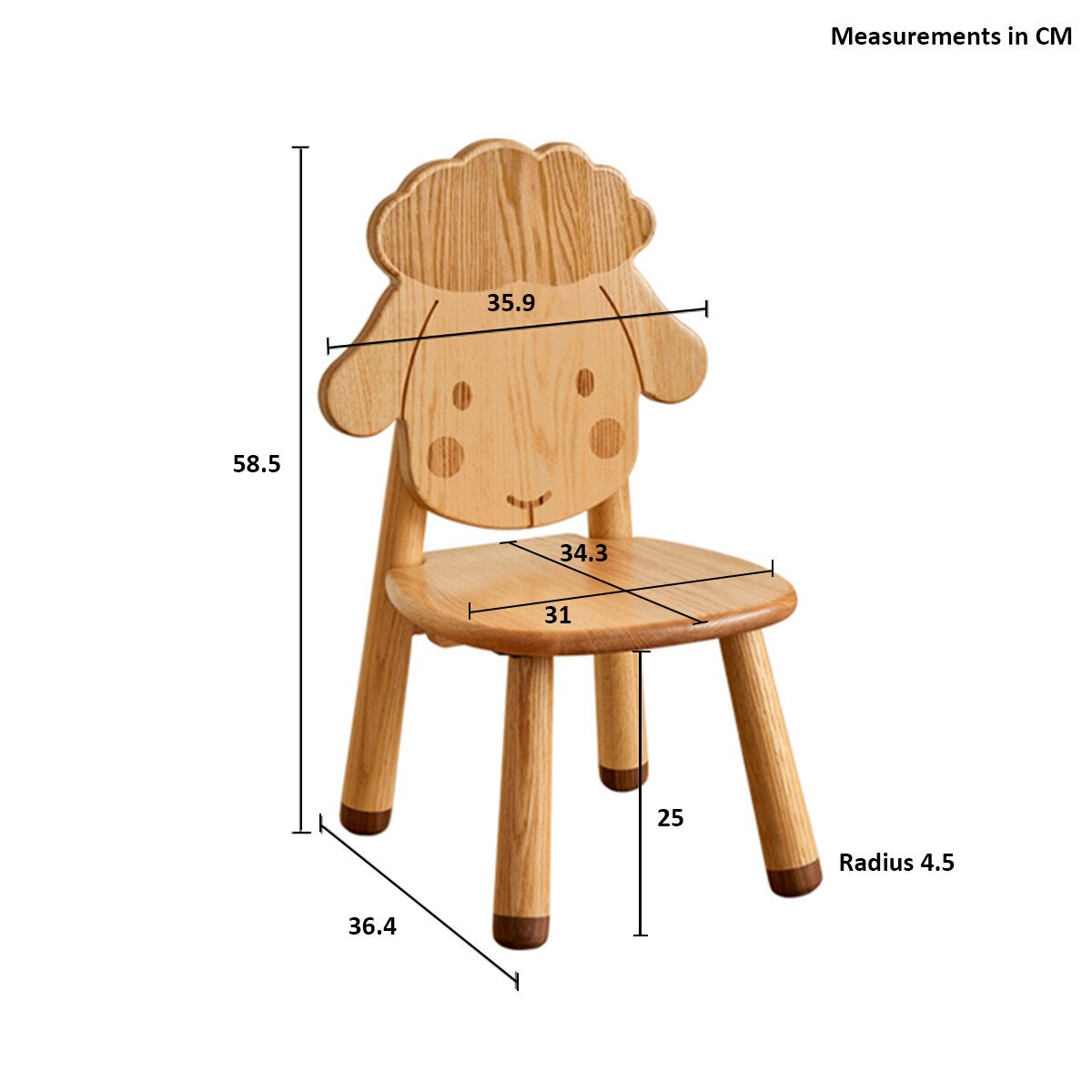 Modern Solid Wood Charming Sheep Kids Chair