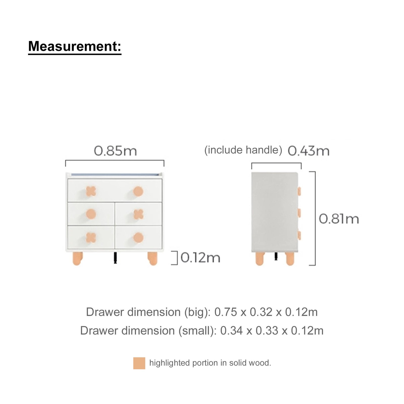 Innovative Design Solid Wood Flutter Ferns Kids Chest of 5 Drawers