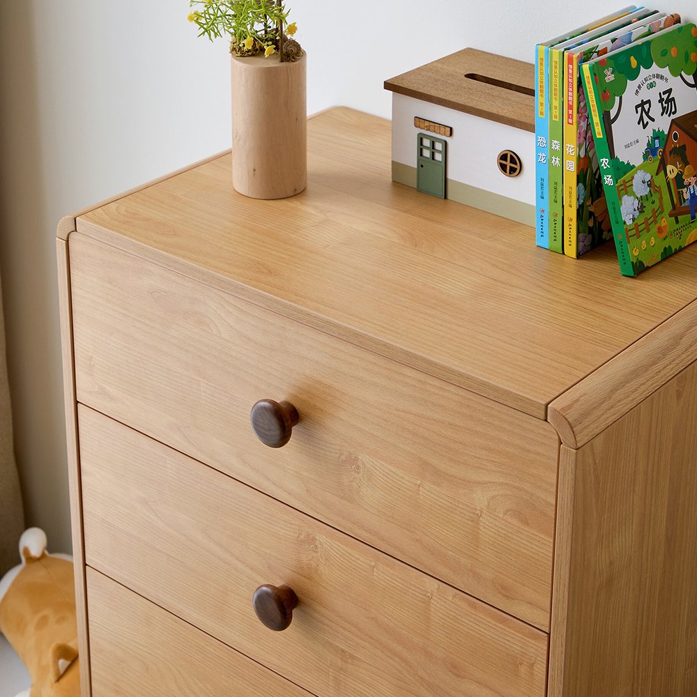 Made of solid wood. Drawer on smooth gliding slide. Fully rounded edges make it child-friendly.