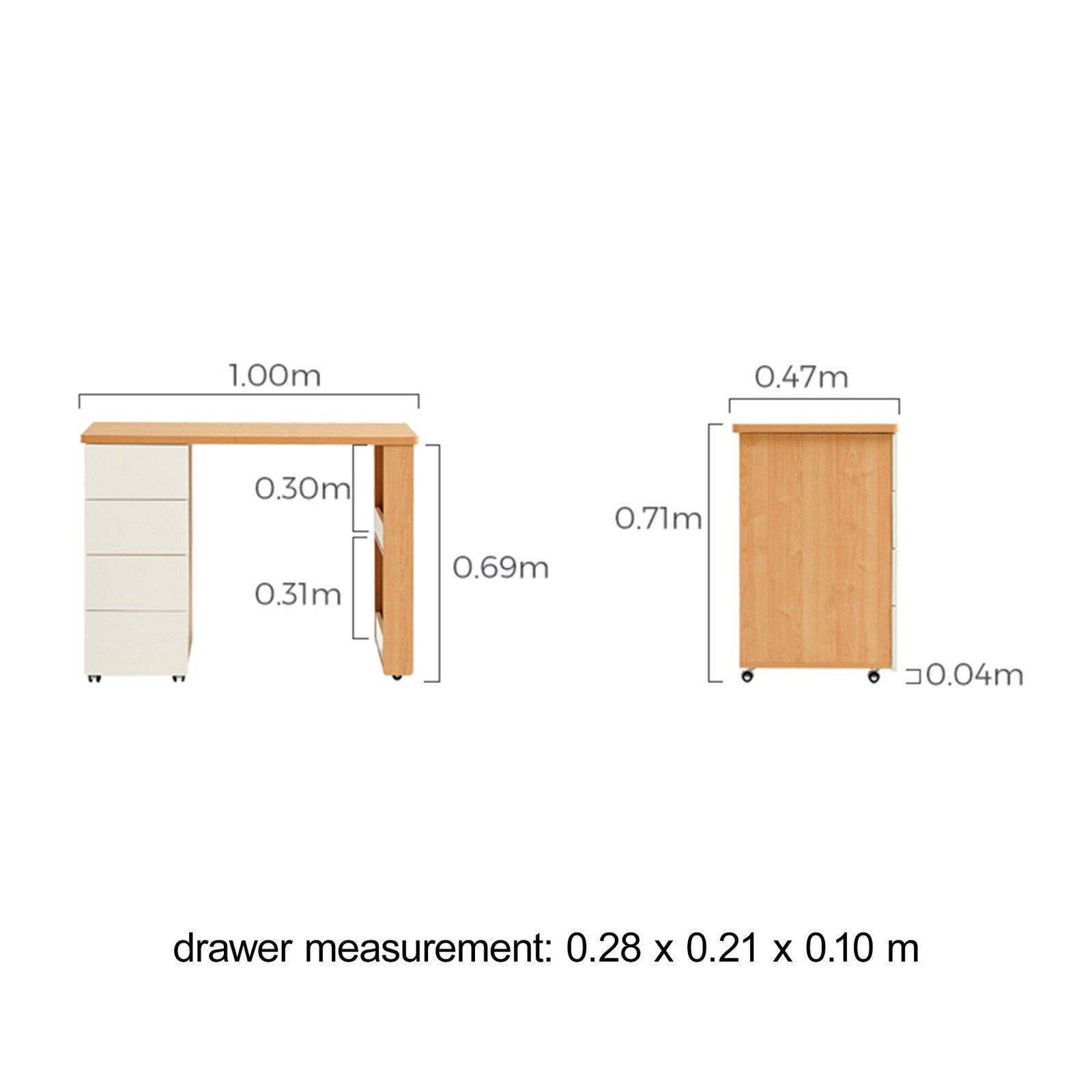 The Lullaby Loft Kids Movable Study Table is made from solid wood. It is equipped with castor wheels, enabling easy movement. It features 4-drawer storage and a 2-tier storage bookshelf, maximizing space utilization.