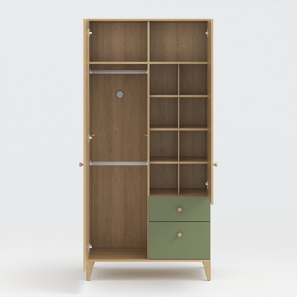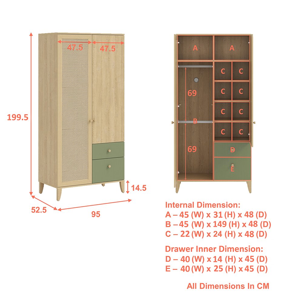 Keep everything stored in your child’s bedroom with the Puddle Pods Kids 2 Doors Wardrobe. Be it socks, underwear, shirts, books, toys, and more, there are multiple hanger rods, and compartment shelves to keep everything where it should be.
