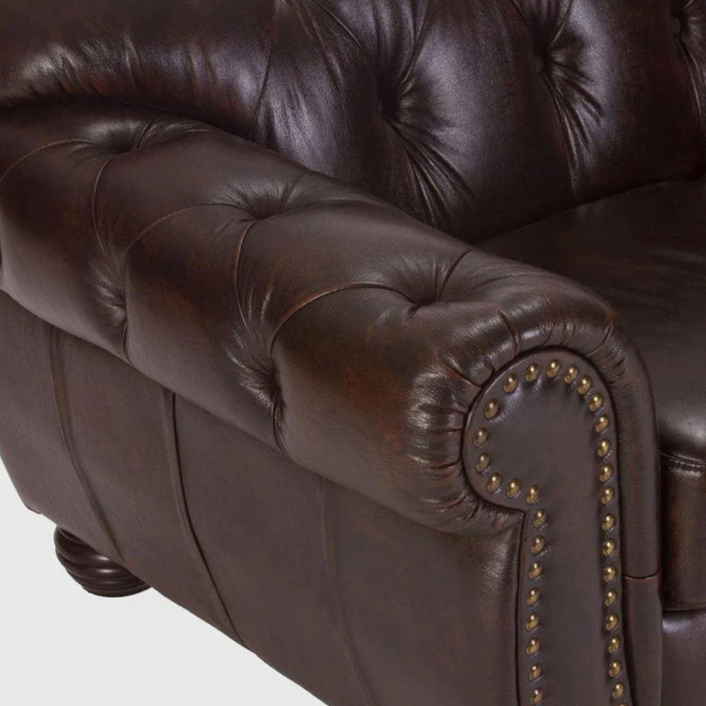 Upholstered in premium leather, the Norwich Lounge exudes a refined, vintage charm that enhances its character over time. The beautifully detailed arms and backrests not only provide comfort but also add to its iconic Chesterfield appeal.