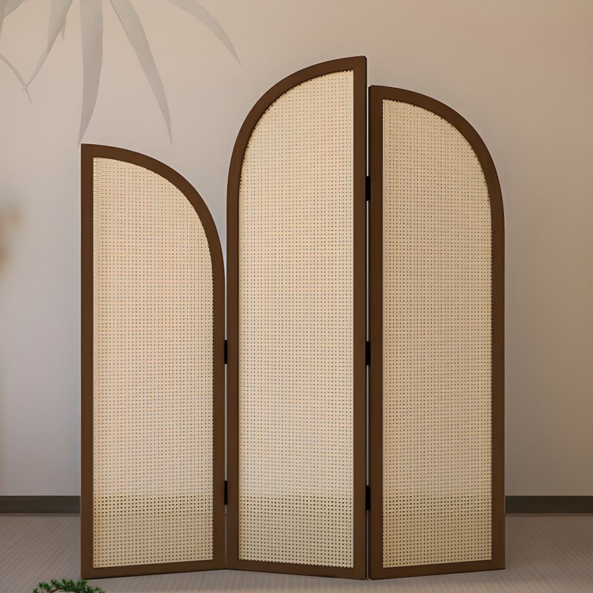 Refined Functionality Solid Wood Glacierveil Rattan Room Divider