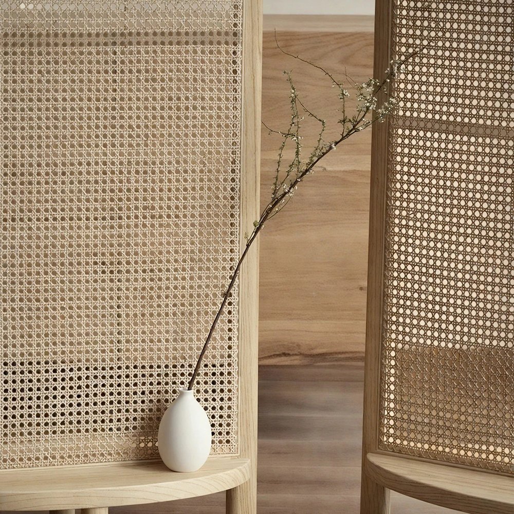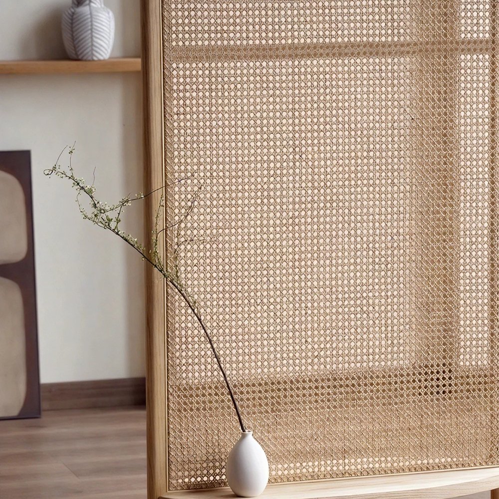 Each panel is meticulously crafted using high-quality solid wood and intricate natural cane weaving techniques. The wood panels showcase minimalist beauty, while the cane weaving adds a natural and rustic texture, infusing tranquility and harmony into your space.