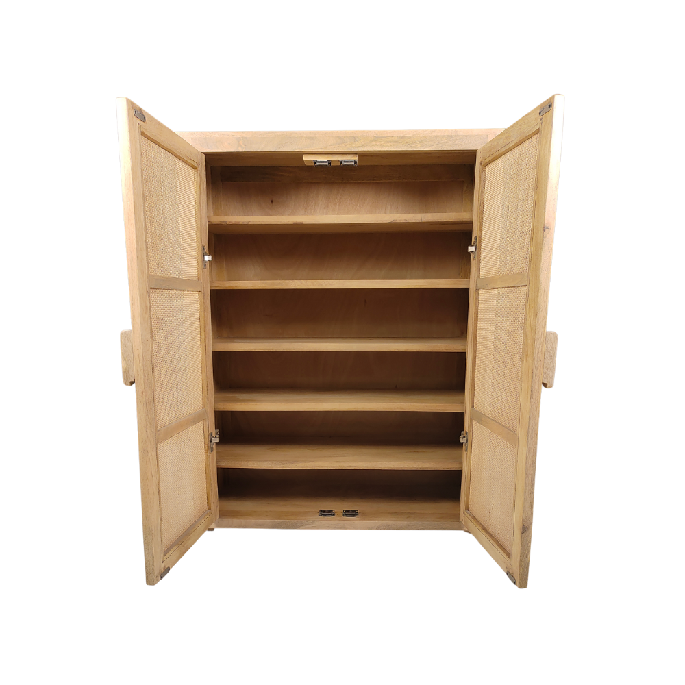 A Dustpath Shoe Rack with Cane is a piece of furniture designed to store and organize shoes. It is typically constructed primarily from wood, though variations may incorporate other materials such as metal or glass for decorative or functional purposes. The choice of wood can influence the cabinet’s appearance, durability, and price.