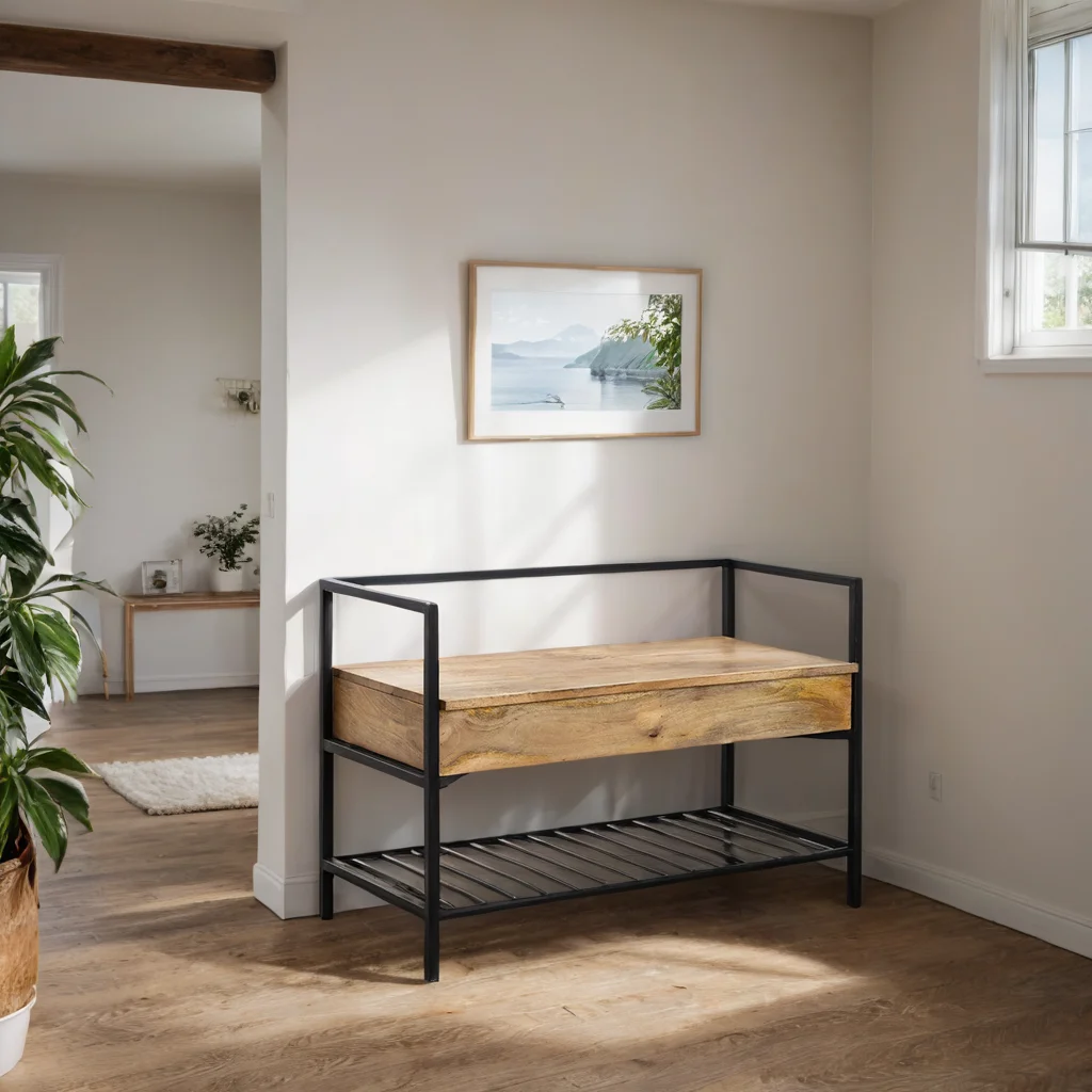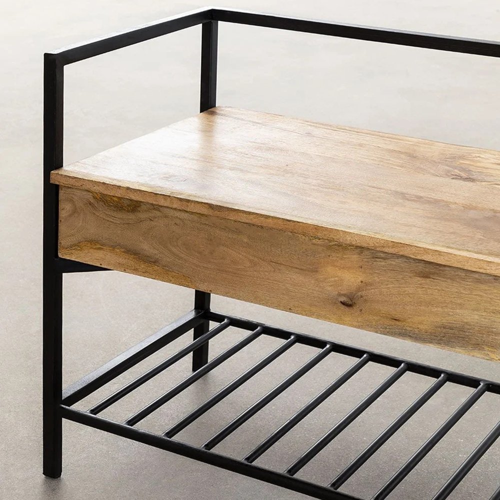 Maintaining order at the entrance of homes is a gesture that we all appreciate. With our Mango Wood Foxtrail Shoe Rack- we want to make it easy for you. Okut is a bench that has a folding seat that offers us extra storage space, where you can store all your accessories. It is made of mango wood with an iron structure and combines perfectly in all decorative styles providing an industrial touch.