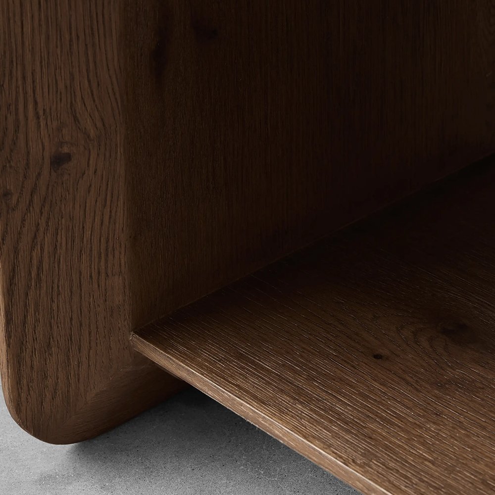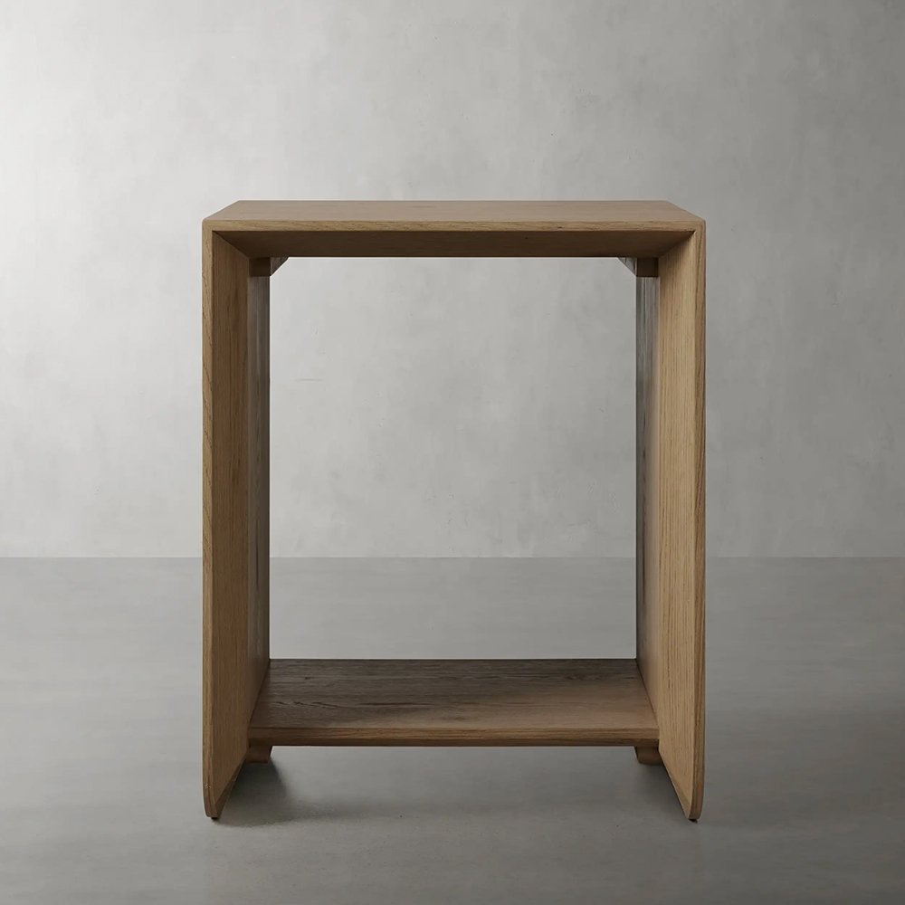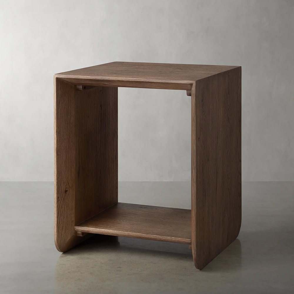 Felton Side Table crafted from solid wood. Each piece is stained and finished with lacquer for added protection and subtle sheen. This collection is artisan-crafted from natural materials with hand-applied finishes. Individual pieces may vary in color, pattern, shape, and texture, making each truly unique.