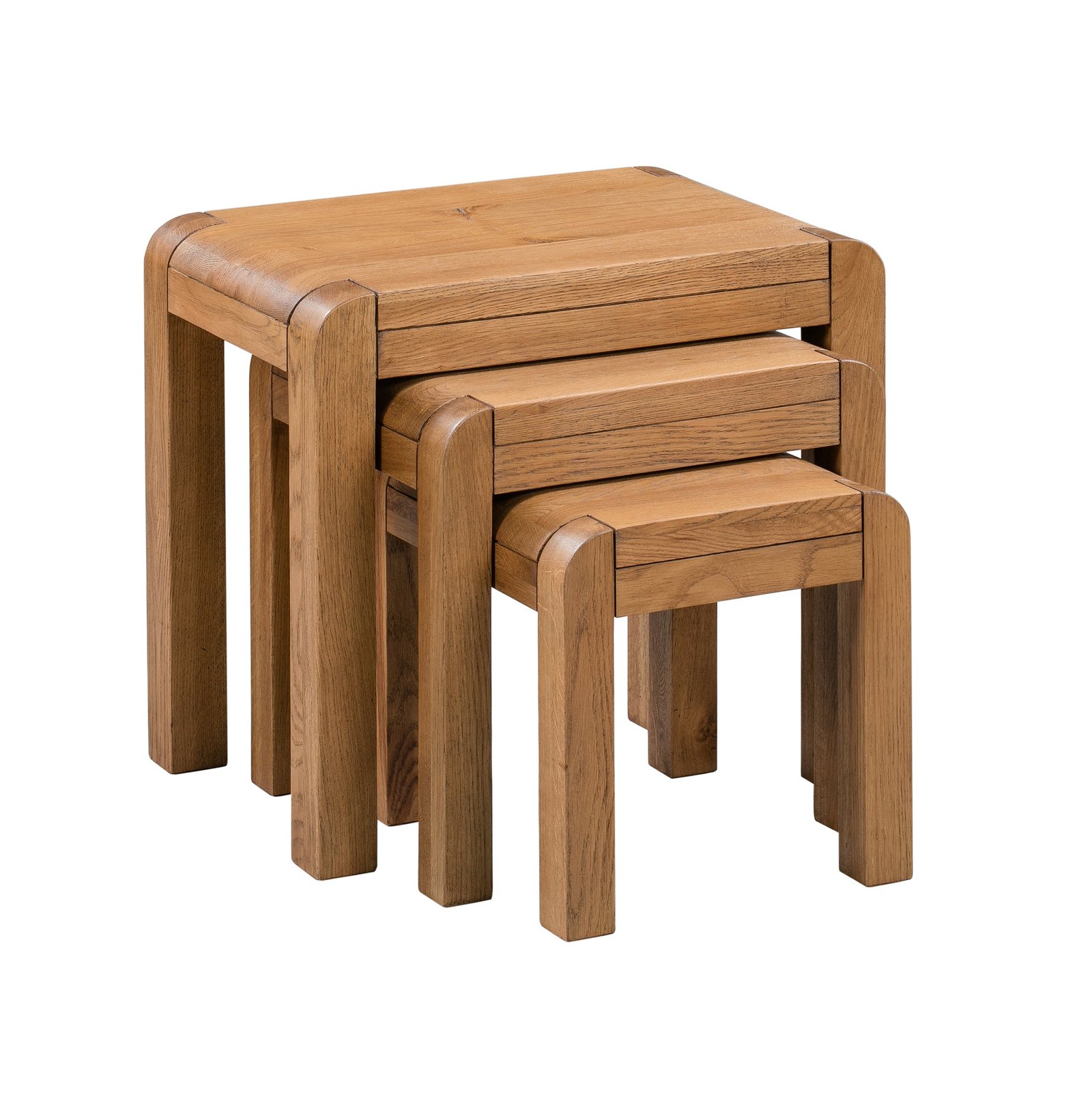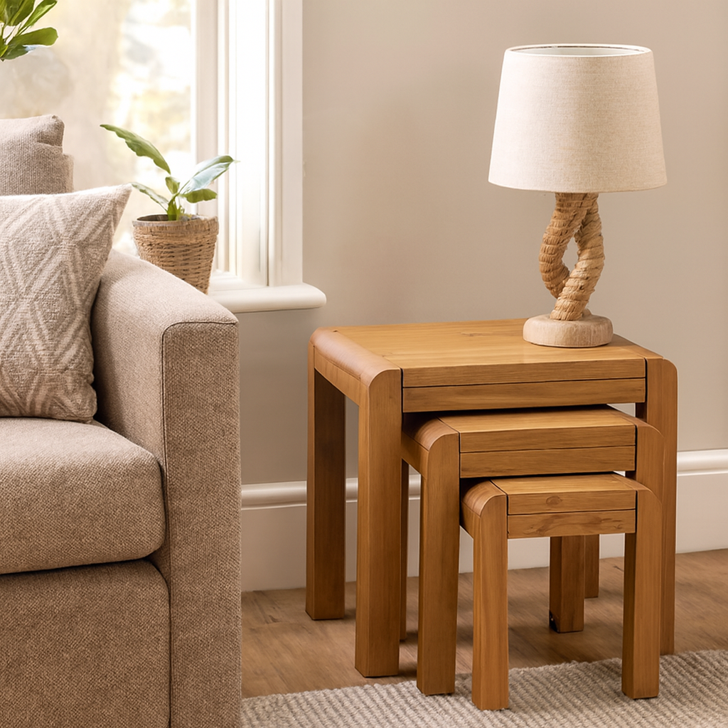 A convenient feature of this nest of tables is that you get three tables, for the space of one, as they nearly slot into each other perfect for households with limited space. You can pull one out when and if you need an extra surface.