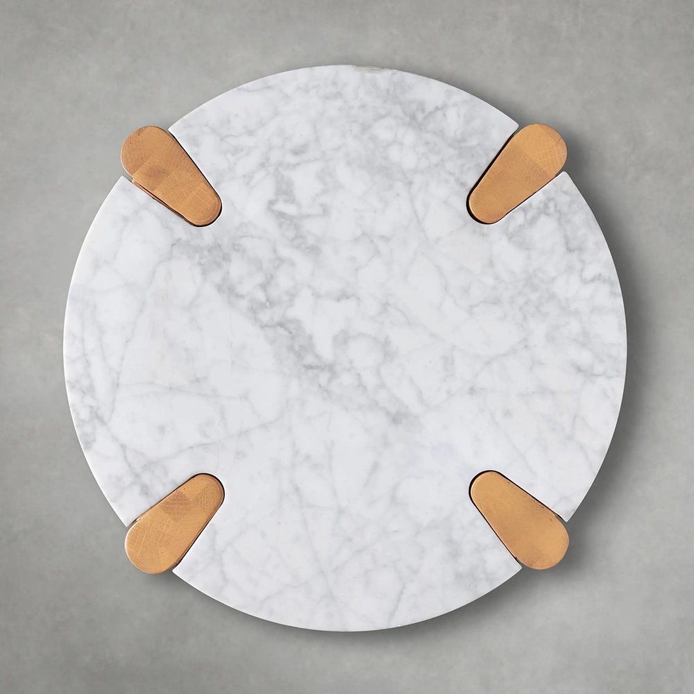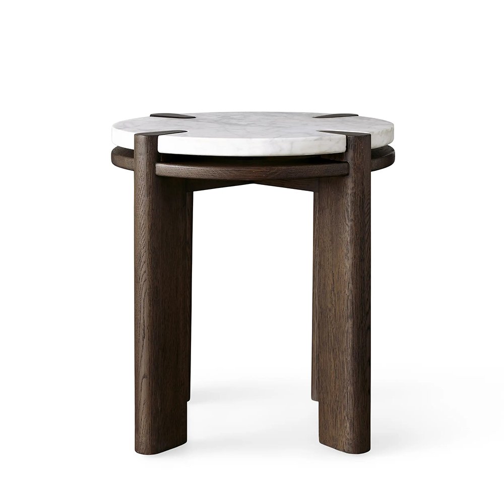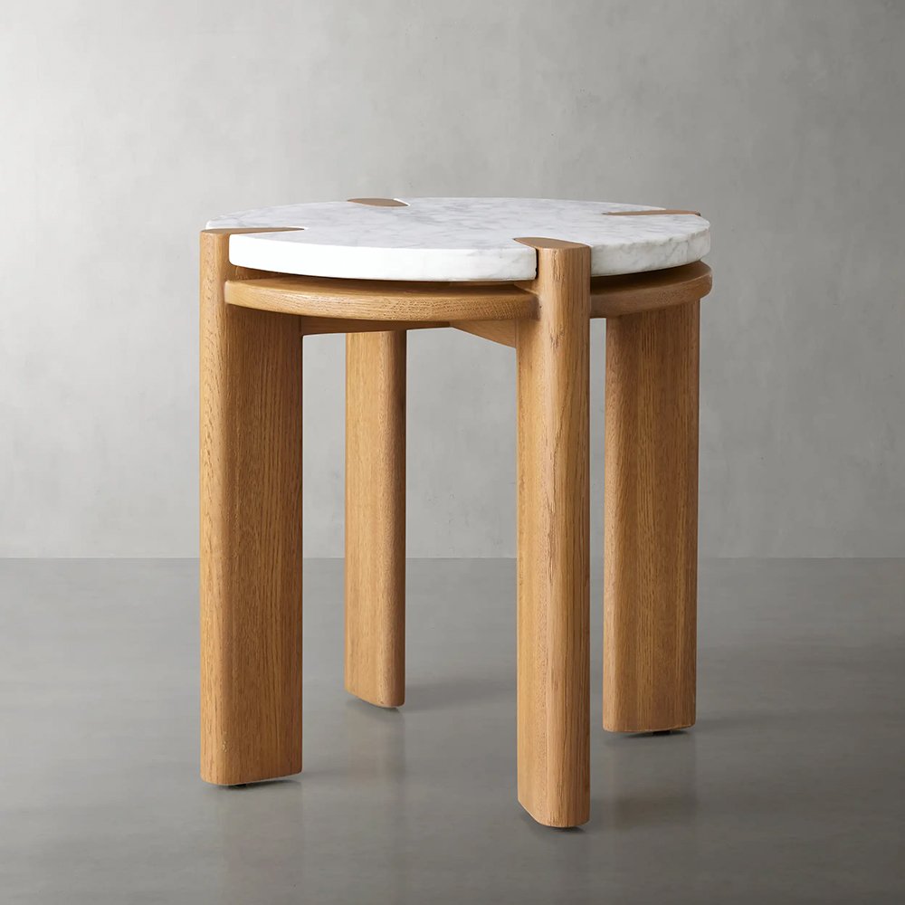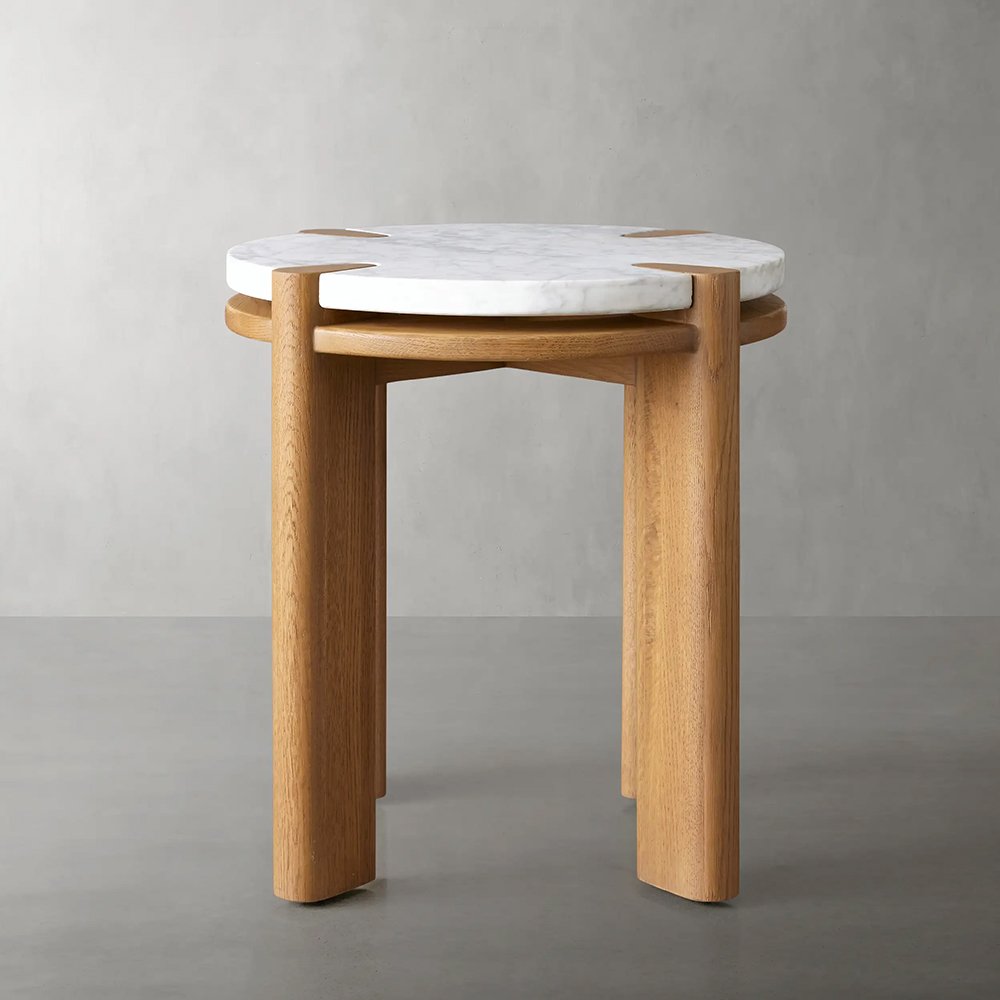Pyet Side Table with Marbel Top bases are crafted from solid wood hand-stained with a striking finish and protective lacquer for a subtle sheen. Tabletops are crafted from natural marble stone and solid wood joinery to bases for added strength and stability. Carrara marble is sourced from Rajasthan.