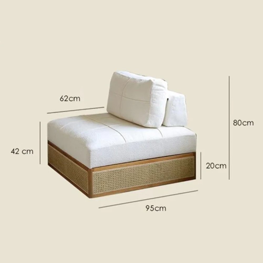 Material : Solid Acacia Wood, Rattan & Upholstery