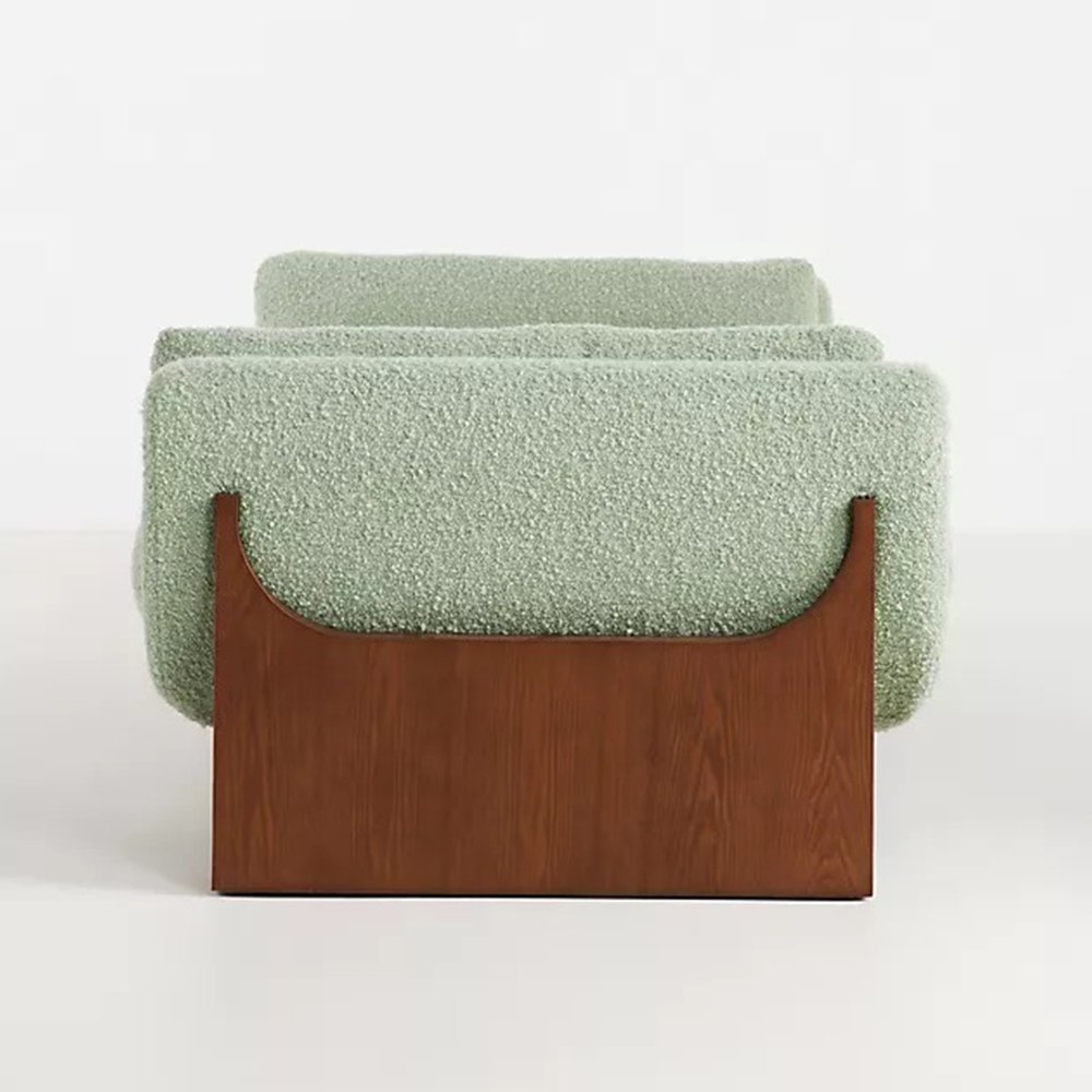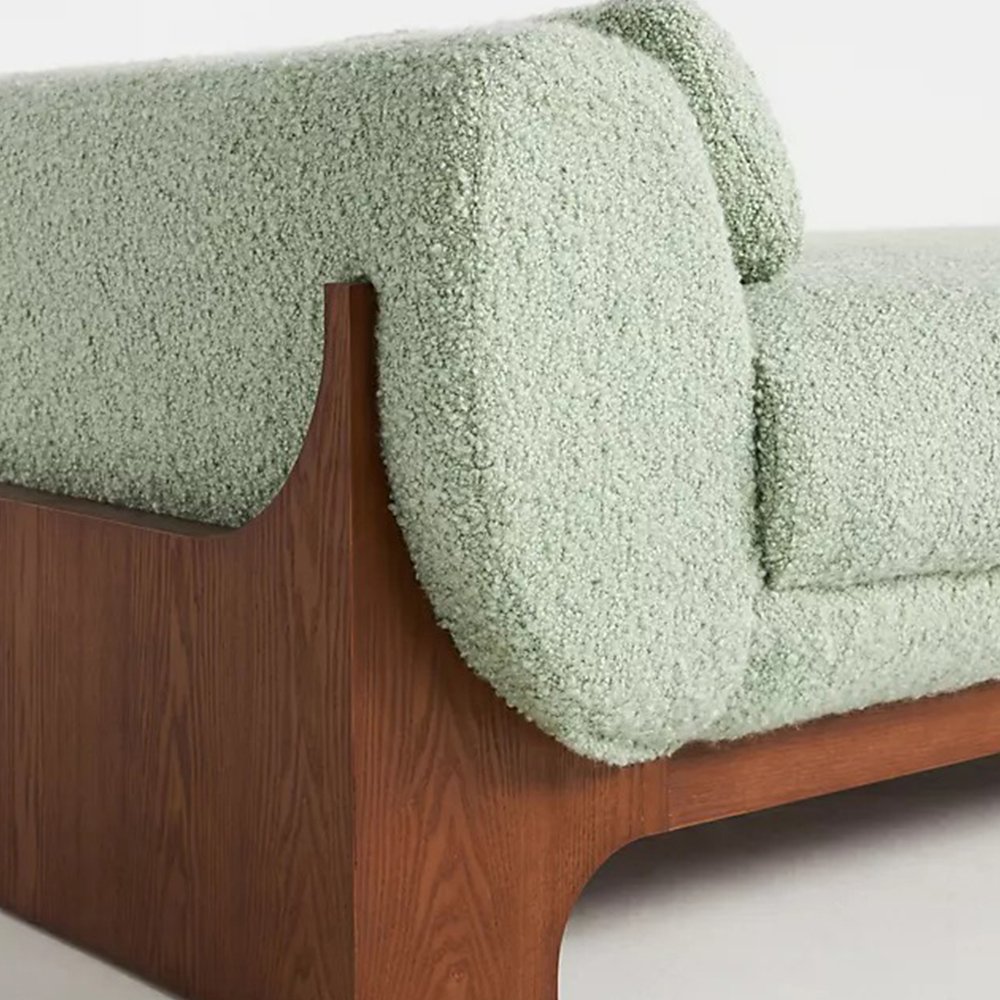 This roomy Dewdrop Lounge day bed Sofa invites sophistication into any space. Derived from the French word meaning curled, bouclé is crafted of looped yarns – sporting a textured, ringed look. A rustic wooden frame supports this upholstered dreamscape and features two long throw pillows for extra comfort.