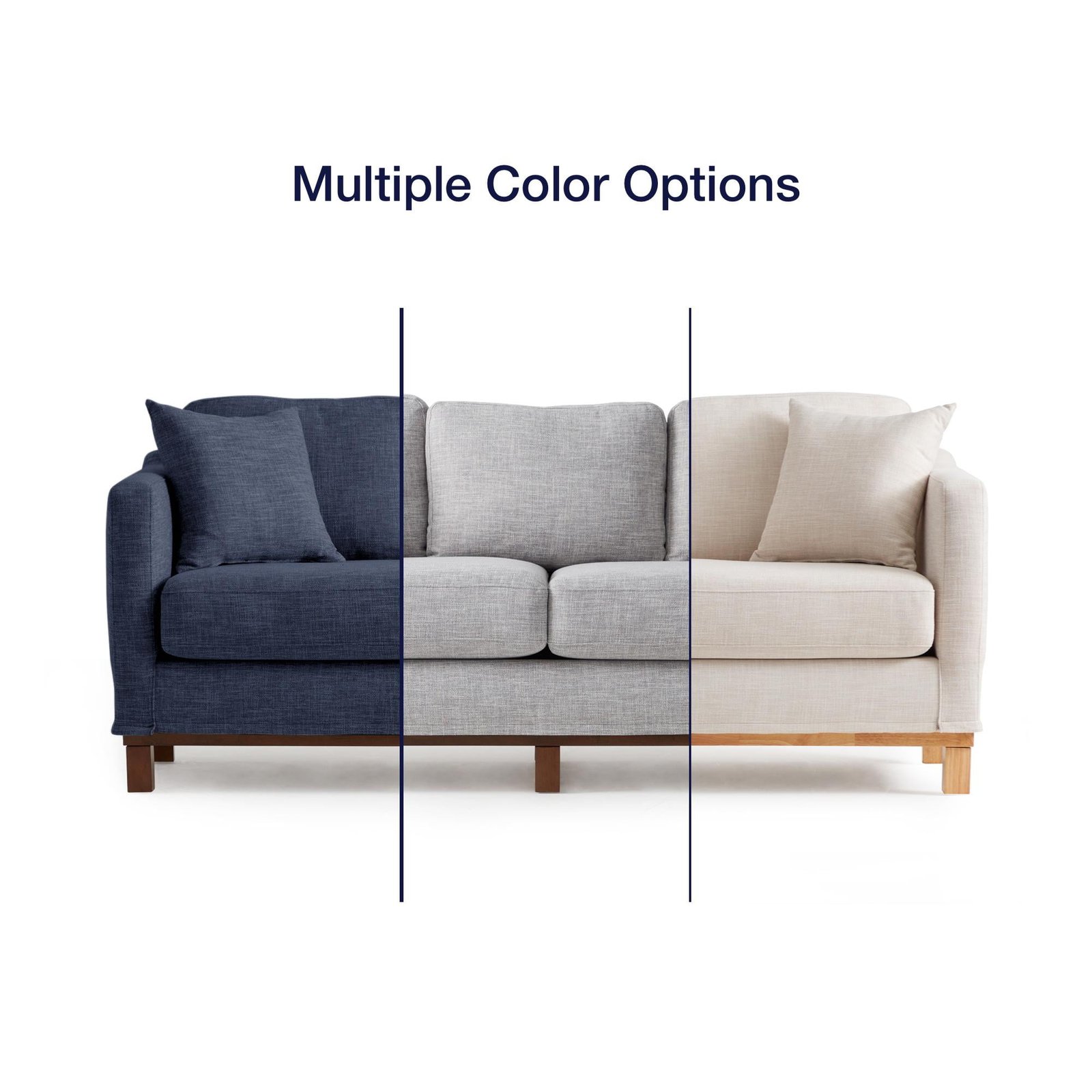 The linen-inspired fabric and matching throw pillows create a relaxed look and feel. You’ll want to spend the day lounging on the large cushions, which are extra comfy thanks to the super-soft foam fill.
