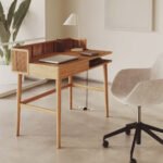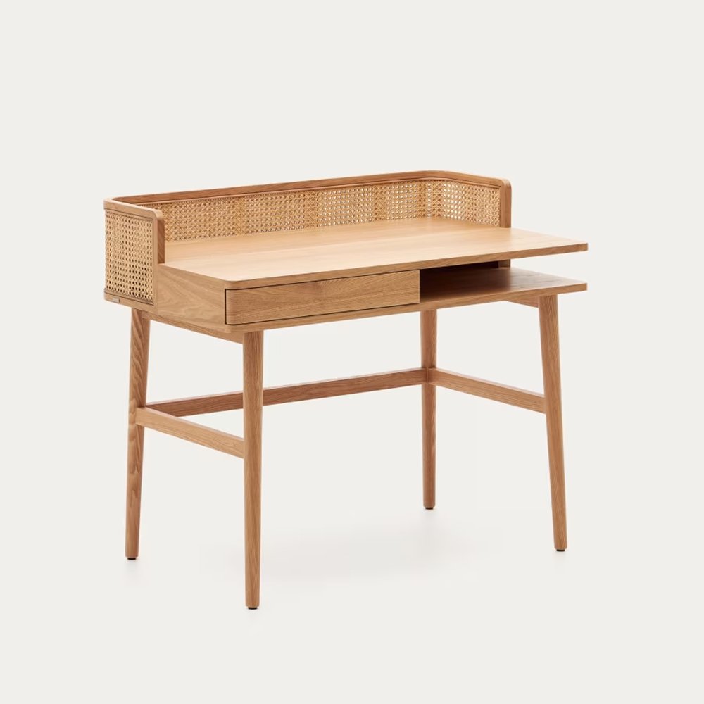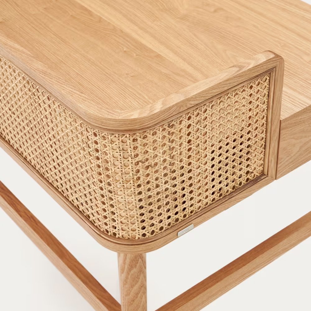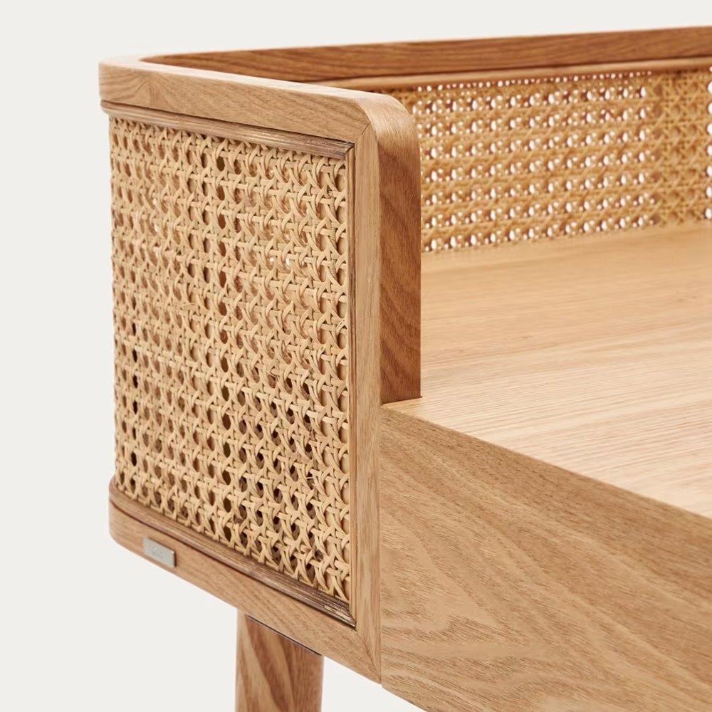 Trust in sustainable solid wood to set the mood in your workspace and keep your place cozy. The Araxi table is solid wood, with a rattan panel at the back that adds style to your working days.