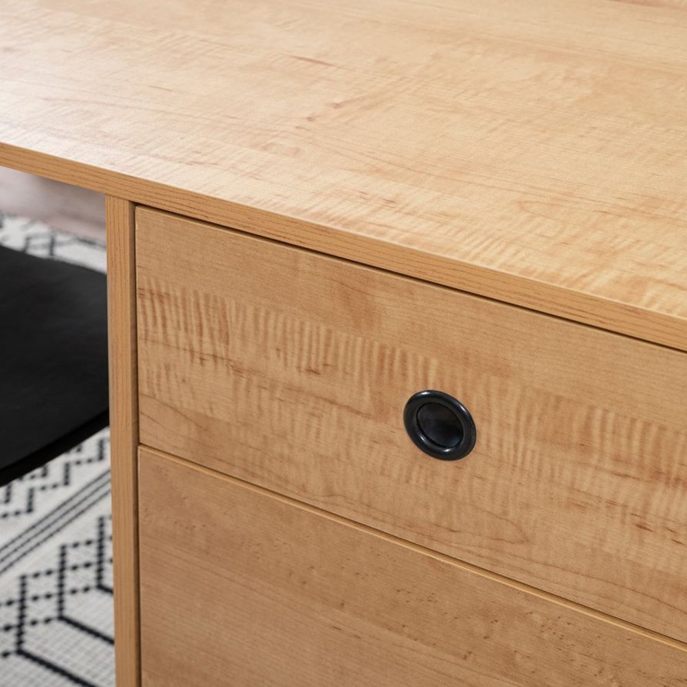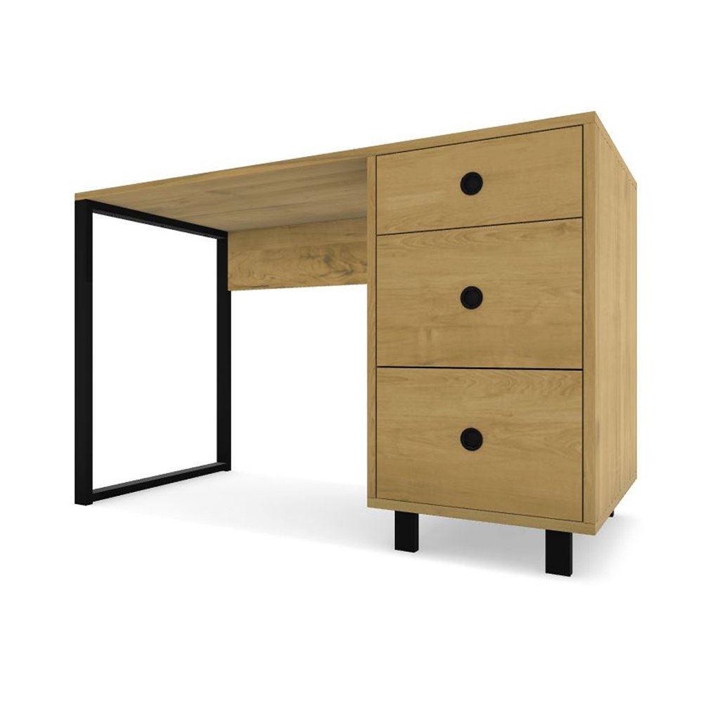 Designed to help you stay productive, the Maple Hollow Desk is a multi-tasking desk perfect for any task. Featuring three spacious sliding drawers and a large work surface, this desk is an essential workspace for anyone working or studying from home. A generous size without feeling bulky, this desk would work in a home office, study nook, or kid’s bedroom. We love the industrial chic design focusing on solid mango wood-look tones and black metal accents that make this desk a feature in any room.