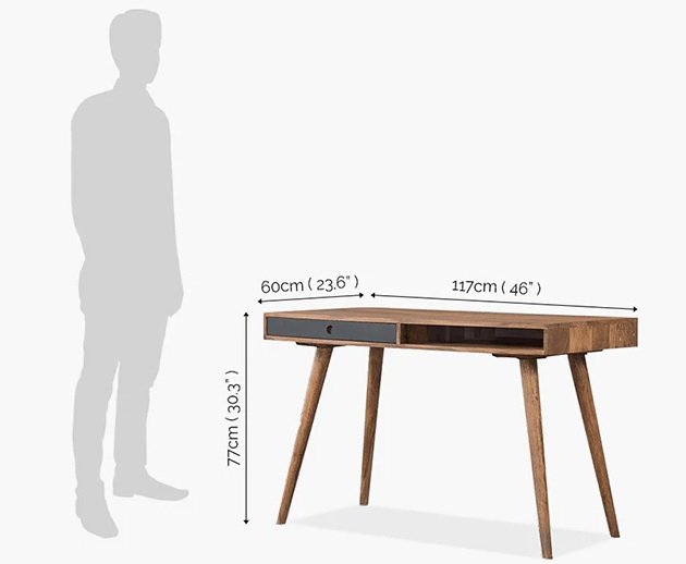 The design of the study desk can vary, ranging from minimalist and modern styles to more traditional or rustic aesthetics. It may come in different finishes and colors to complement various interior design preferences. Some desks have adjustable height options, allowing users to customize the desk to their preferred working position.