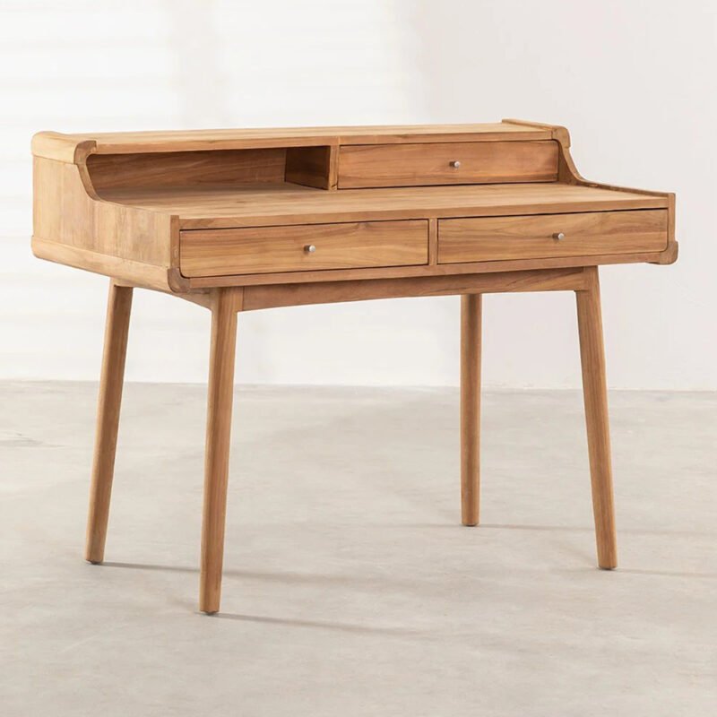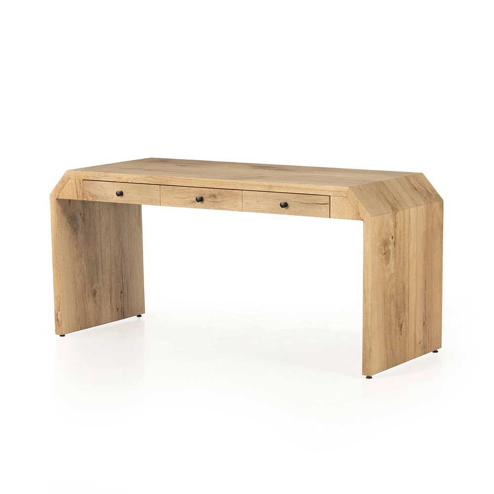 Made entirely from solid Mango Wood with plenty of natural graining, unique curvature gives this organic-spirited desk an airy feel with effortless character. Three drawers keep frequently used office supplies in close reach.