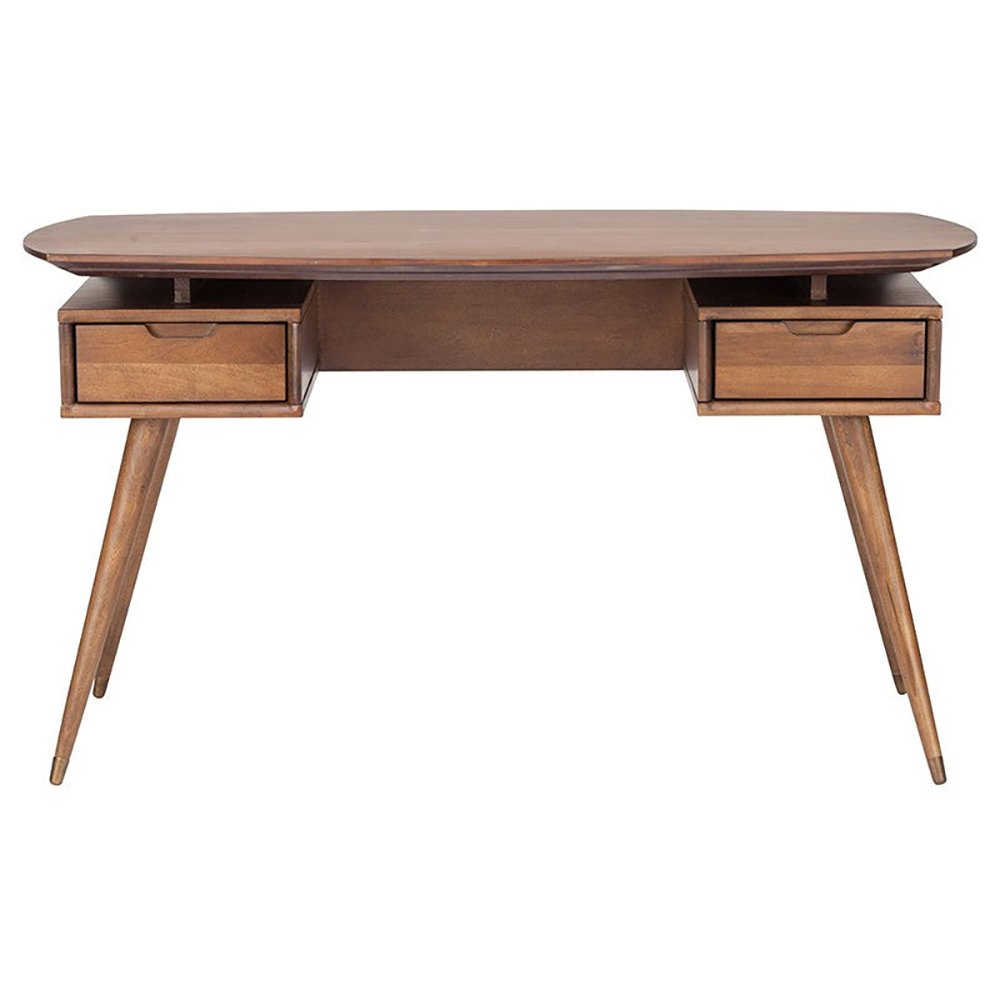 The Stylish Northvale Desk Table is a brilliant example of a unique mid-century design. Combining the classically refined elements of the genre with innovative craftsmanship the Northvale is both subtle and exceptionally original in design. The two-drawer Northvale desk is available in solid American Poplar stained Walnut with fitted brass feet.
