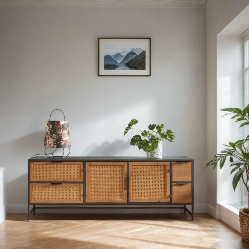 Natural Finish Solid Wood & Cane Frosthill TV Cabinet