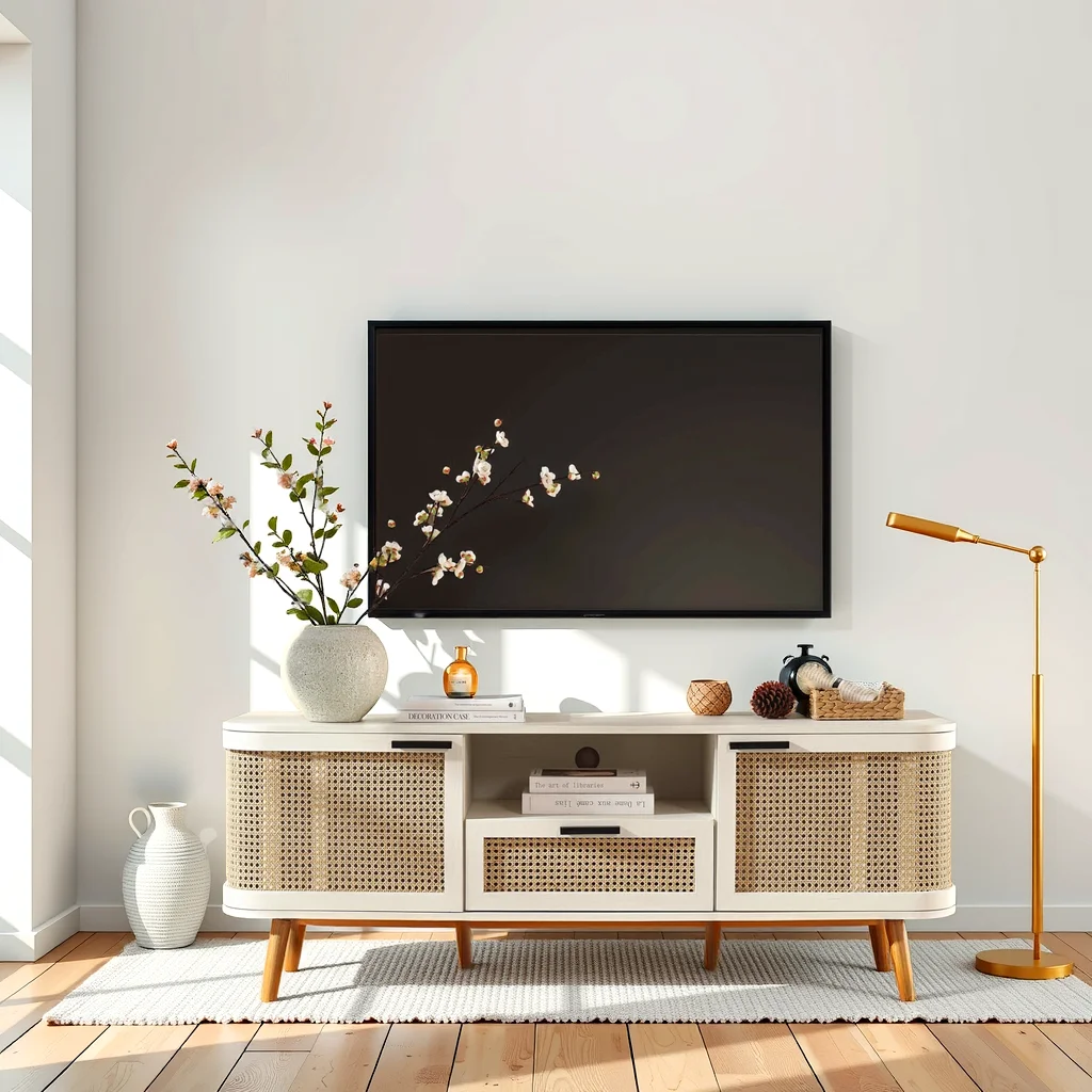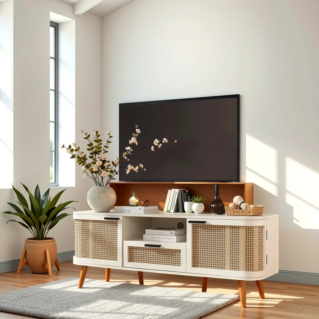 Inspired Comfort Cloudcrest Curved TV Cabinet with Rattan
